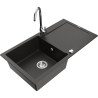 Mexen Leo gránit mosogató 1-medencés csepegtetővel és Telma konyhai csapteleppel, fekete/ezüst metál - 6501-73-670200-00