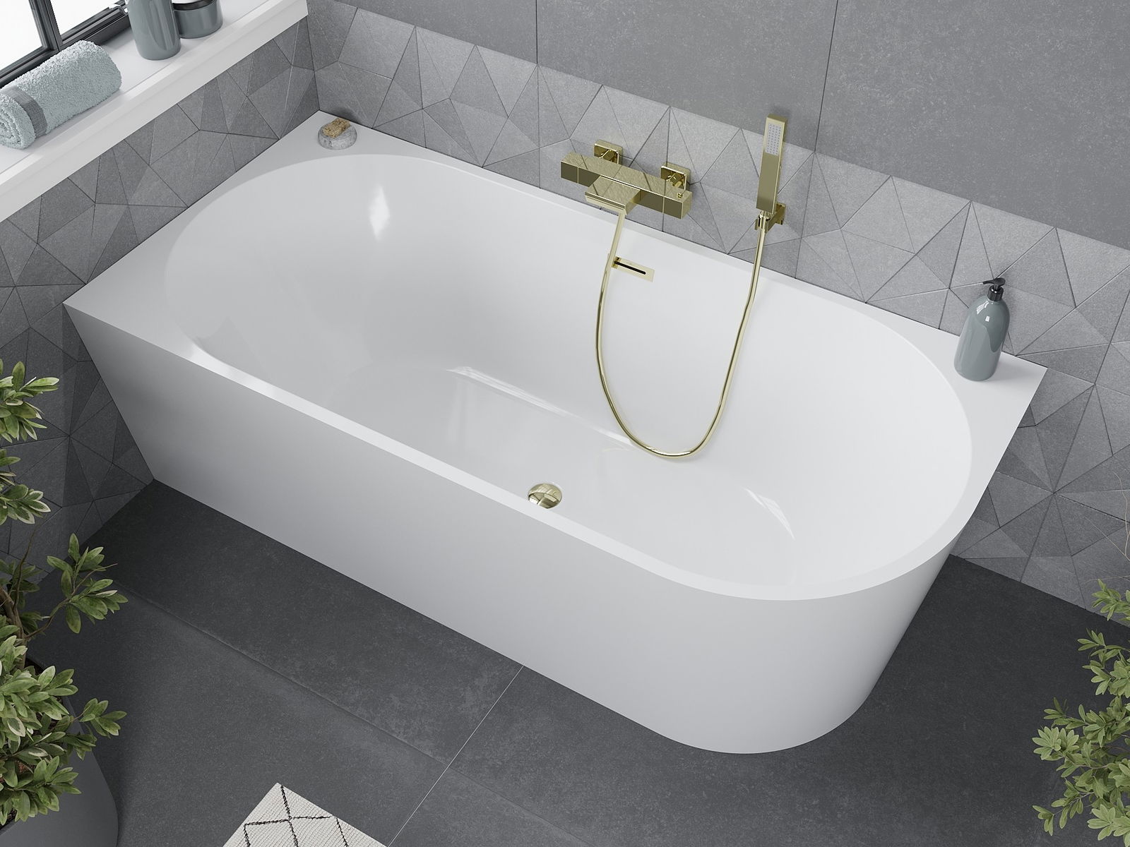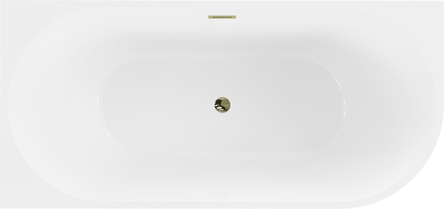 Mexen Mia sarokba állítható bal oldali szabadon álló kád 160 x 80 cm, fehér, arany túlfolyóval - 52691608000L-50