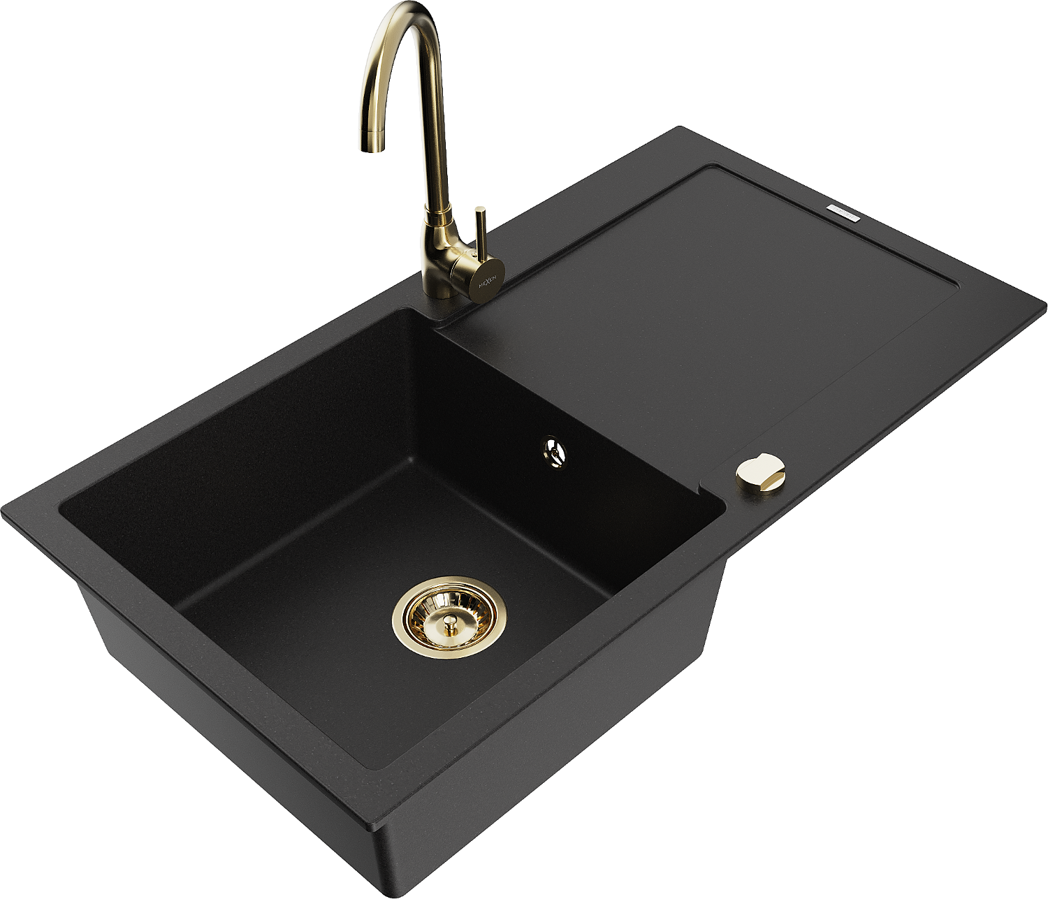 Mexen Leo gránit mosogatótálca, 1 rekeszes csepegtetővel és Telma konyhai csapteleppel, fekete - 6501-77-670200-50