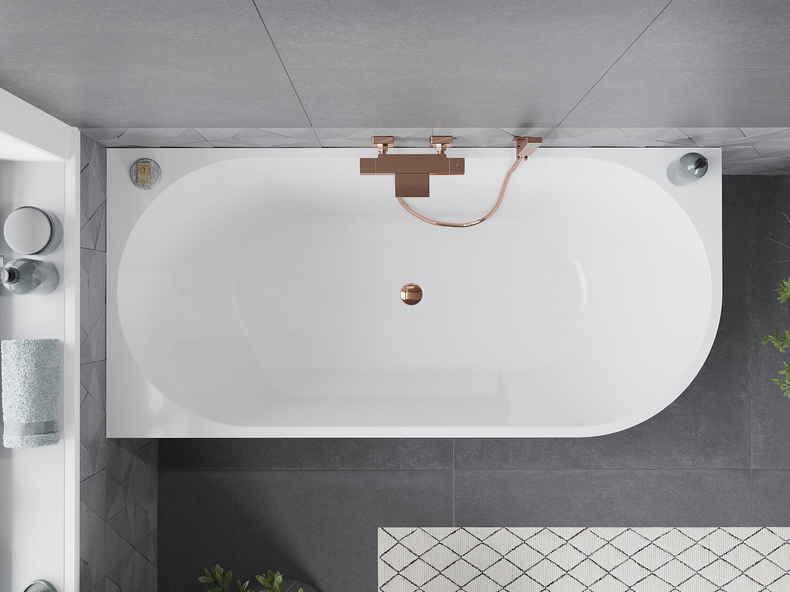 Mexen Mia szabadon álló sarokkád balos 160 x 80 cm, fehér, rózsaarany túlfolyó - 52691608000L-60