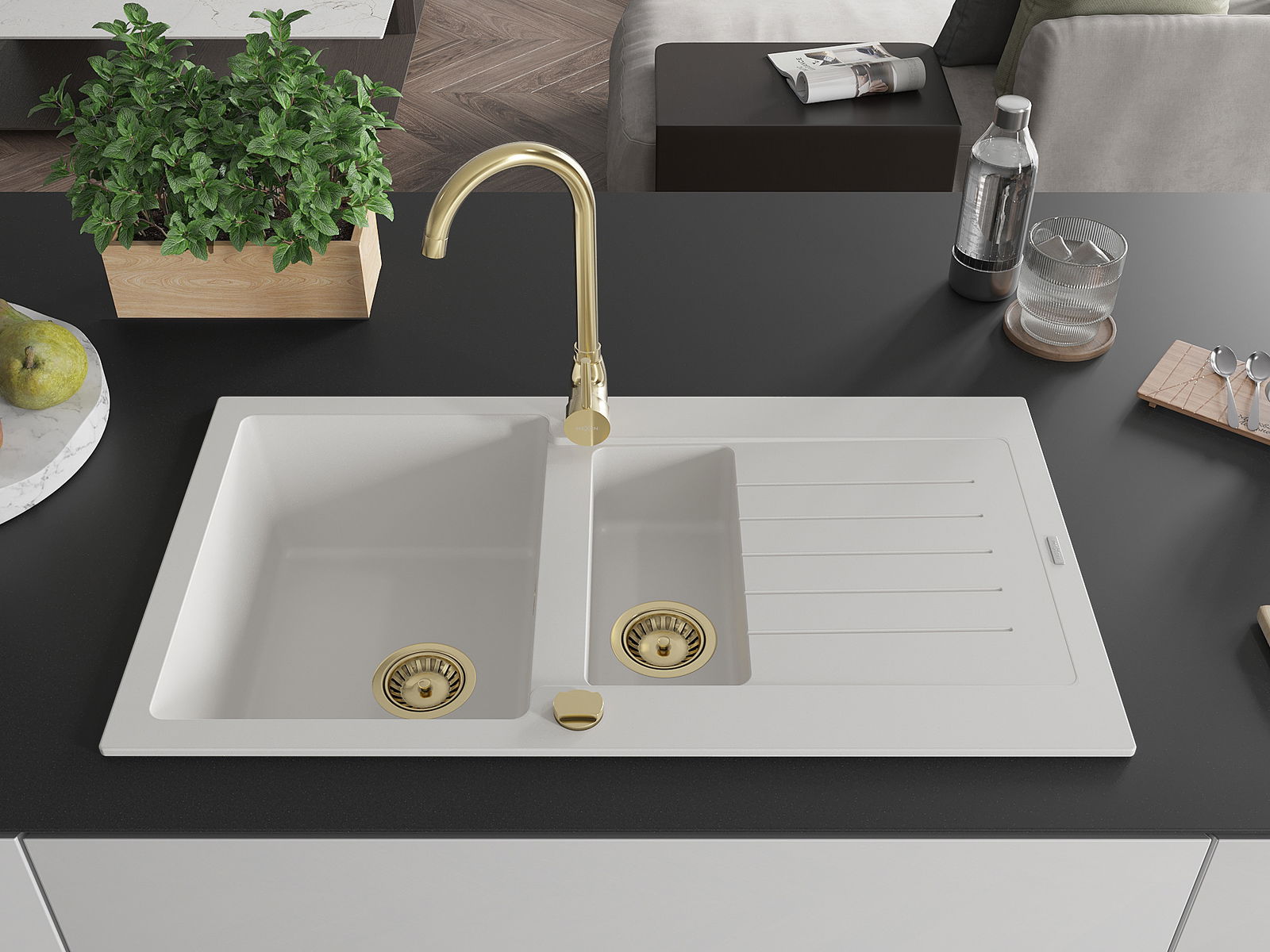 A mosogató felülete ellenáll a foltoknak és a elszíneződésnek, amelynek köszönhetően könnyű megtisztítani és hosszú ideig megtartja színét. Esztétikai és gyakorlatilag kiegészítve minden konyhát.