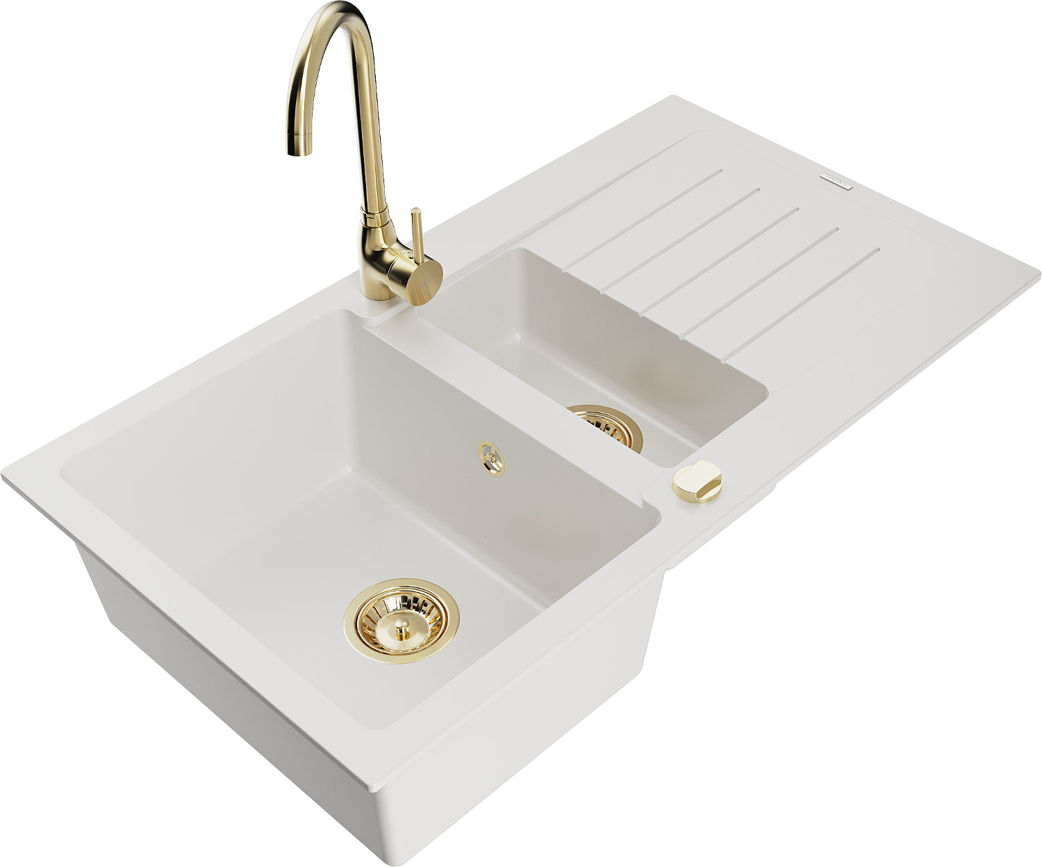 Mexen Matias gránit mosogató 1,5 kamrás csepegtetővel és Telma konyhai csappal, fehér - 6502-20-670200-50