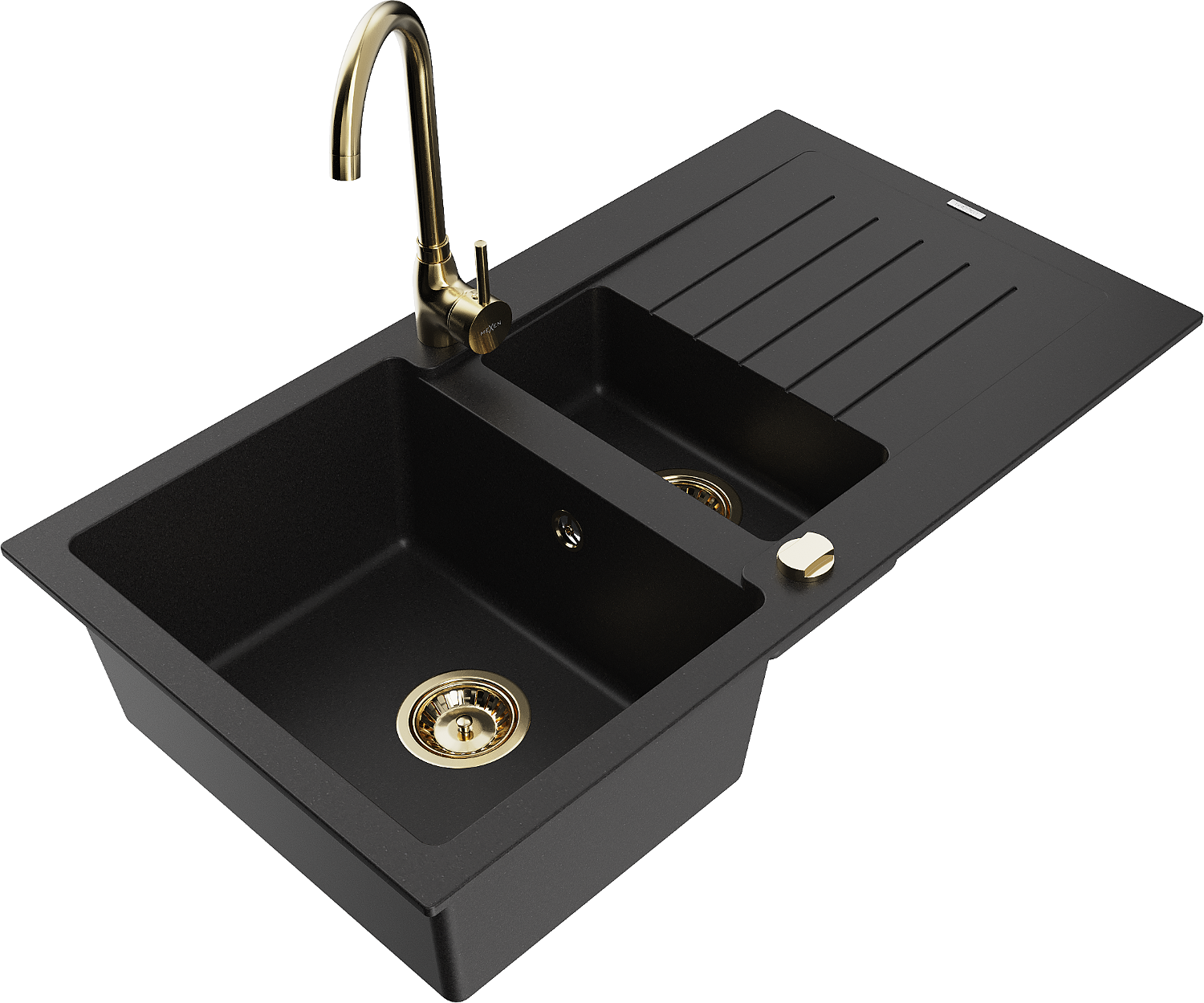 Mexen Matias, 1,5 rekeszes gránit mosogató csepegtetővel és Telma konyhai csapteleppel, fekete - 6502-77-670200-50