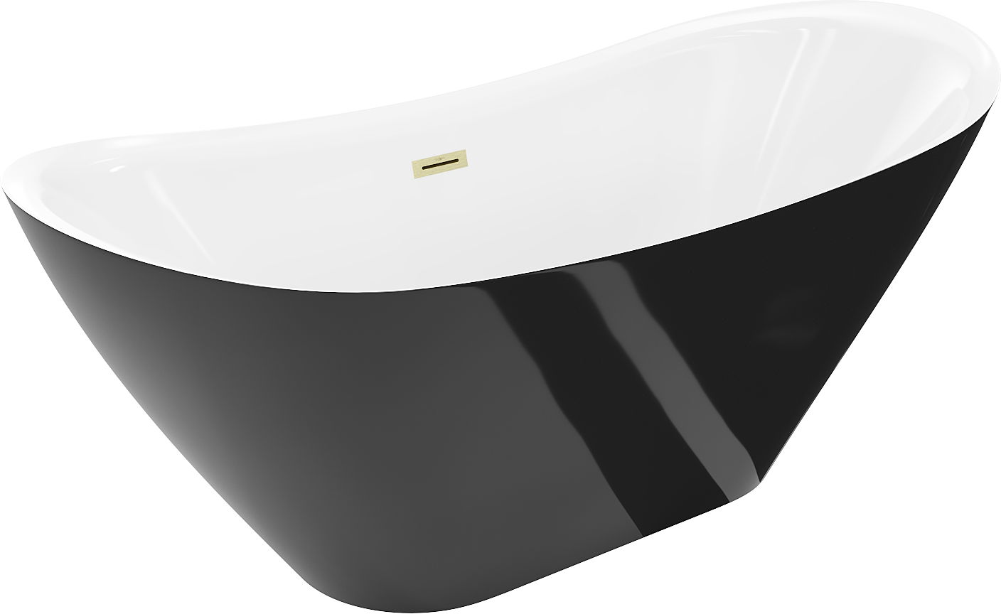 Mexen Lotos szabadon álló kád 180 x 75 cm, fehér/fekete, aranyszínű kefélt túlfolyó - 52051807775-55
