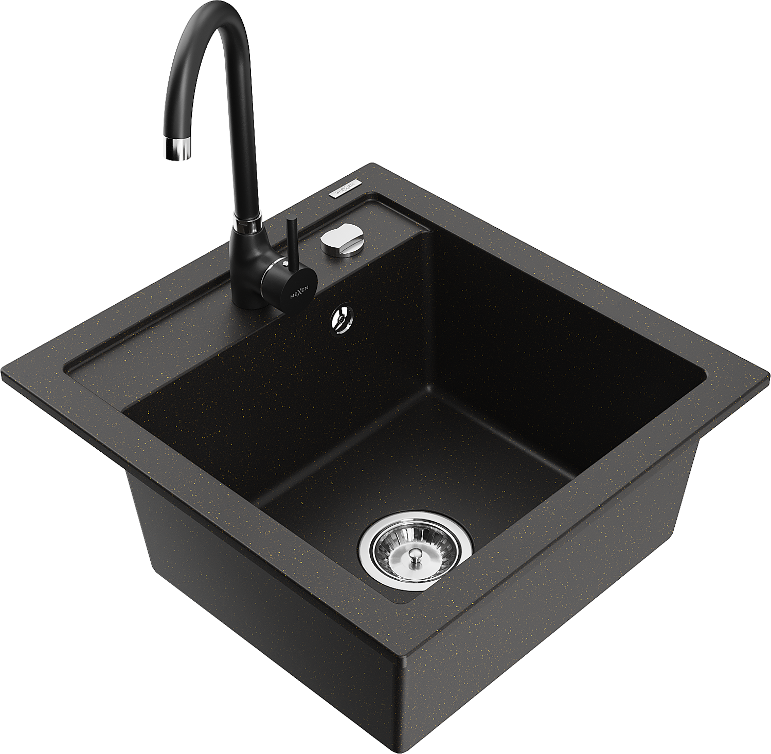 Mexen Vito 1-medencés gránit mosogató Telma konyhai csapteleppel, fekete/arany metál - 6503-75-670200-70