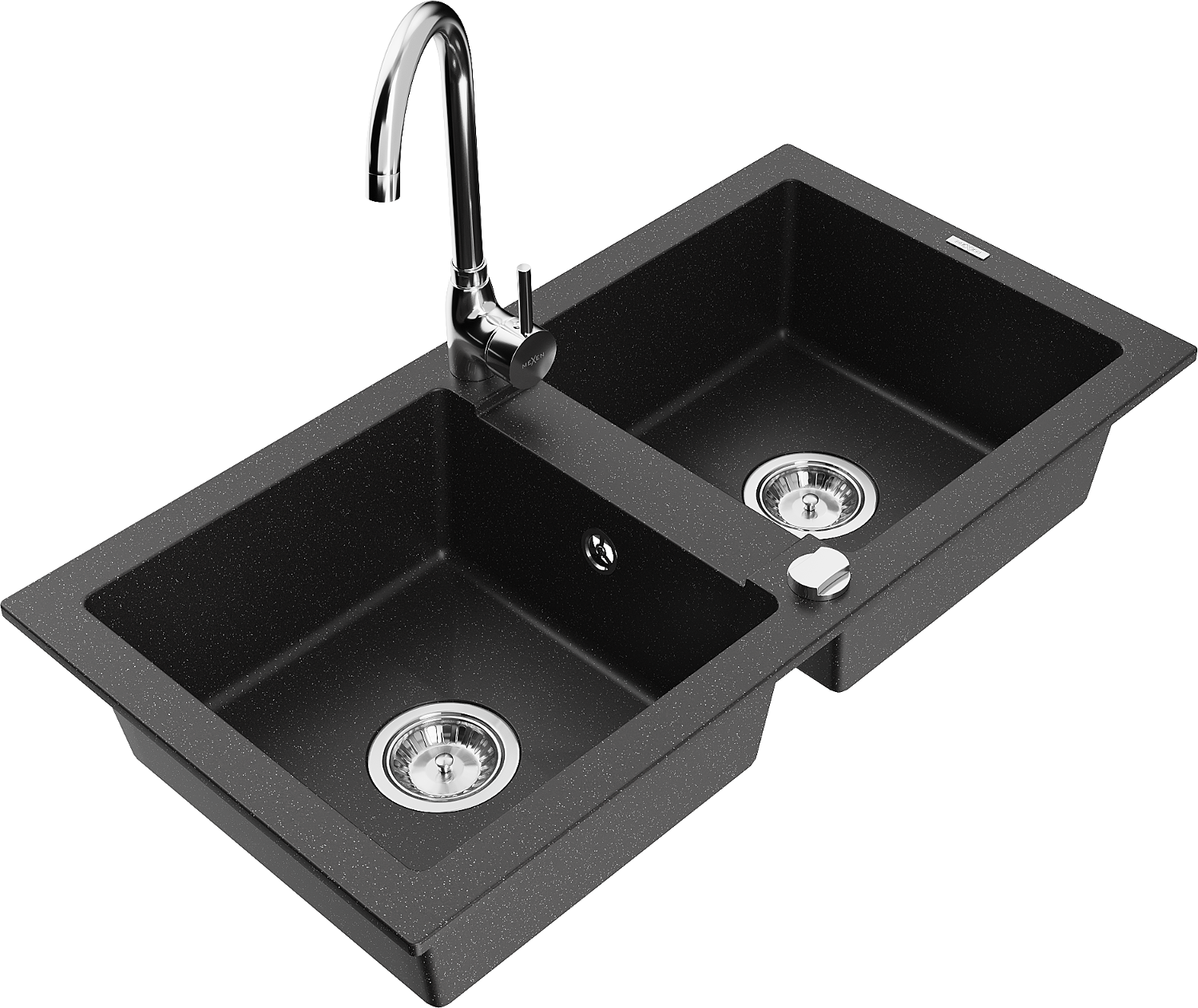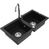 Mexen Mario gránit konyhai mosogató 2 rekeszes Telma csapteleppel, fekete/ezüst - 6504-73-670200-00