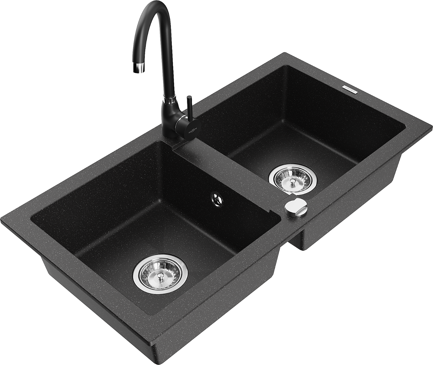 Mexen Mario 2 rekeszes gránit mosogató Telma konyhai csapteleppel, fekete/ezüst - 6504-73-670200-70