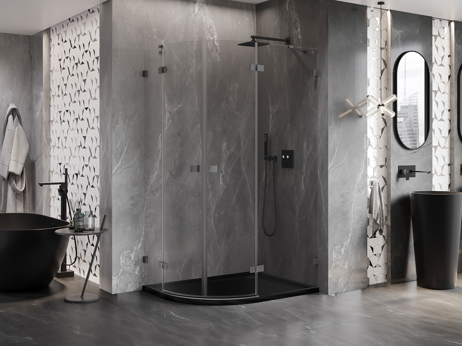 A praktikus és kényelmes fogantyú tartós és ellenálló fémből készült. A divatos forma a profilok színéhez igazított kivitelezéssel együtt modern és stílusos megjelenést kölcsönöz az egésznek, kiemelve minden fürdőszoba esztétikáját.