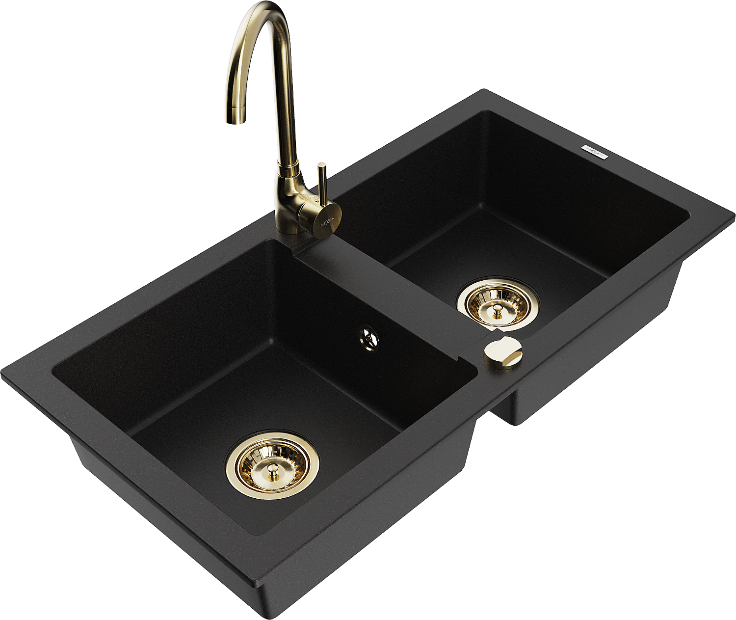 Mexen Mario 2 rekeszes gránit mosogató Telma konyhai csapteleppel, fekete - 6504-77-670200-50