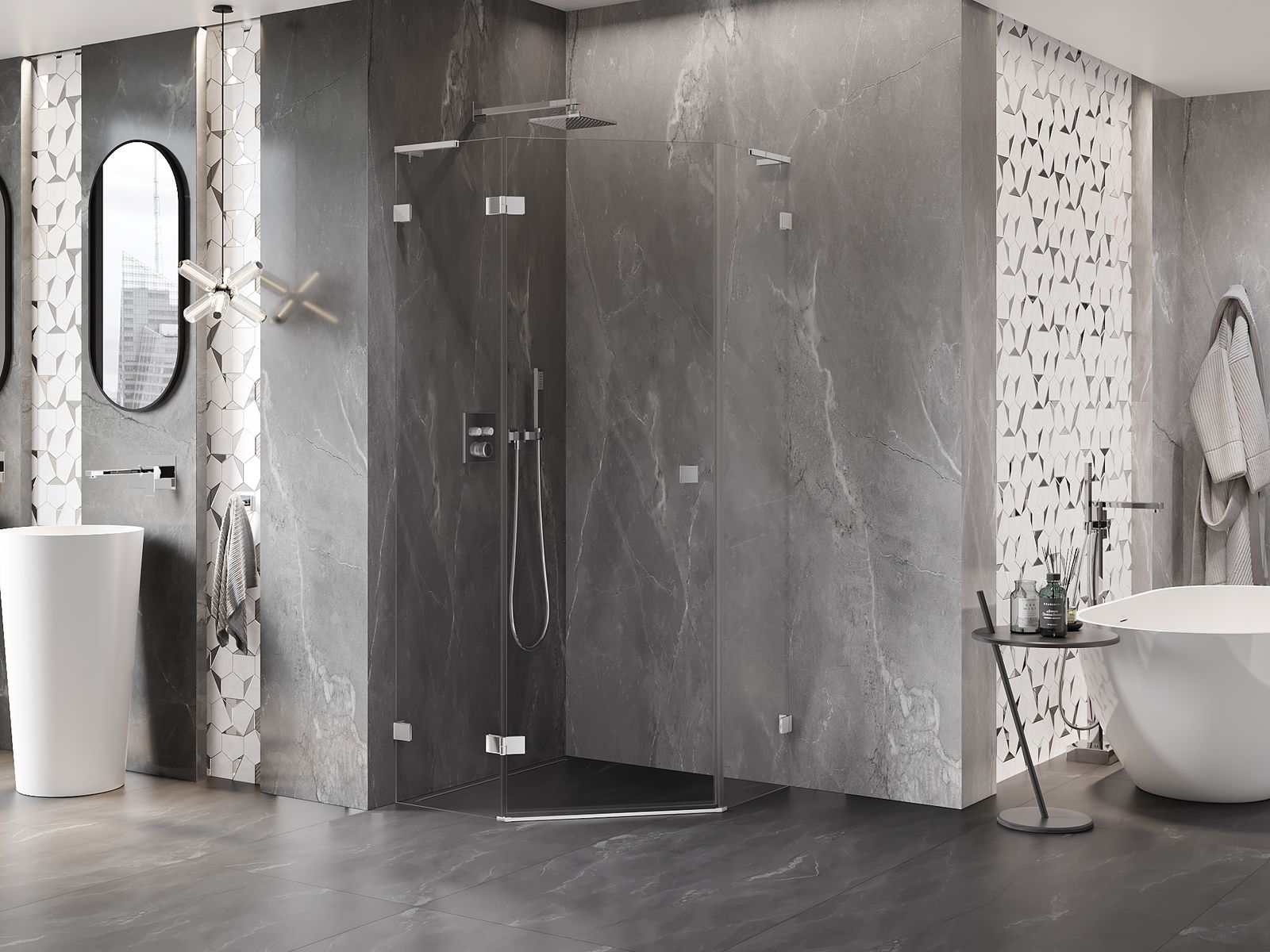 A terméket igény szerint felszerelheti akár a zuhanytálcára, akár közvetlenül a padlóra. Az univerzális szerelési mód lehetővé teszi a termék alkalmazkodását különböző típusú fürdőszobákhoz és térbeli konfigurációkhoz.