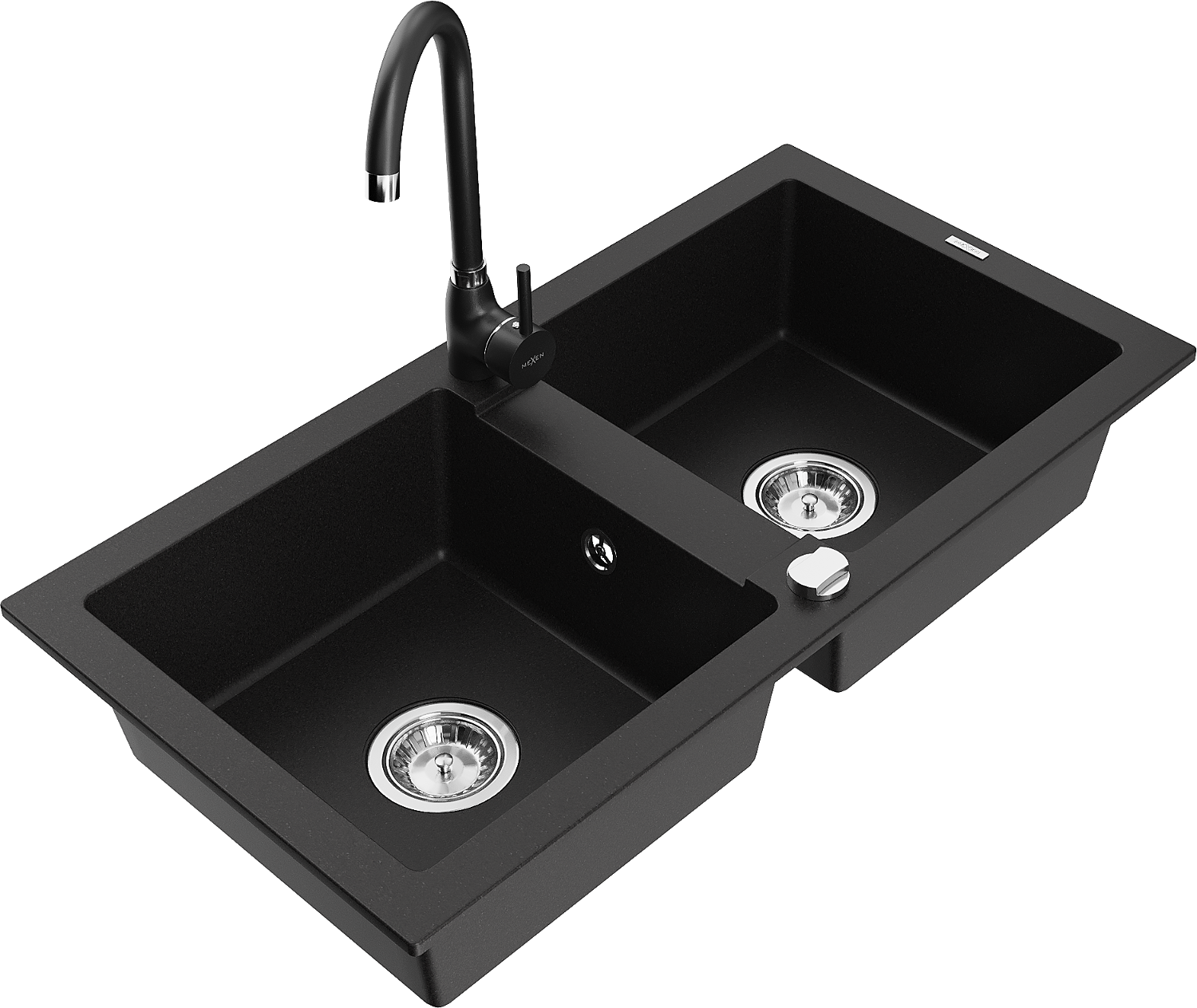Mexen Mario 2-medencés gránit mosogató Telma konyhai csapteleppel, fekete - 6504-77-670200-70