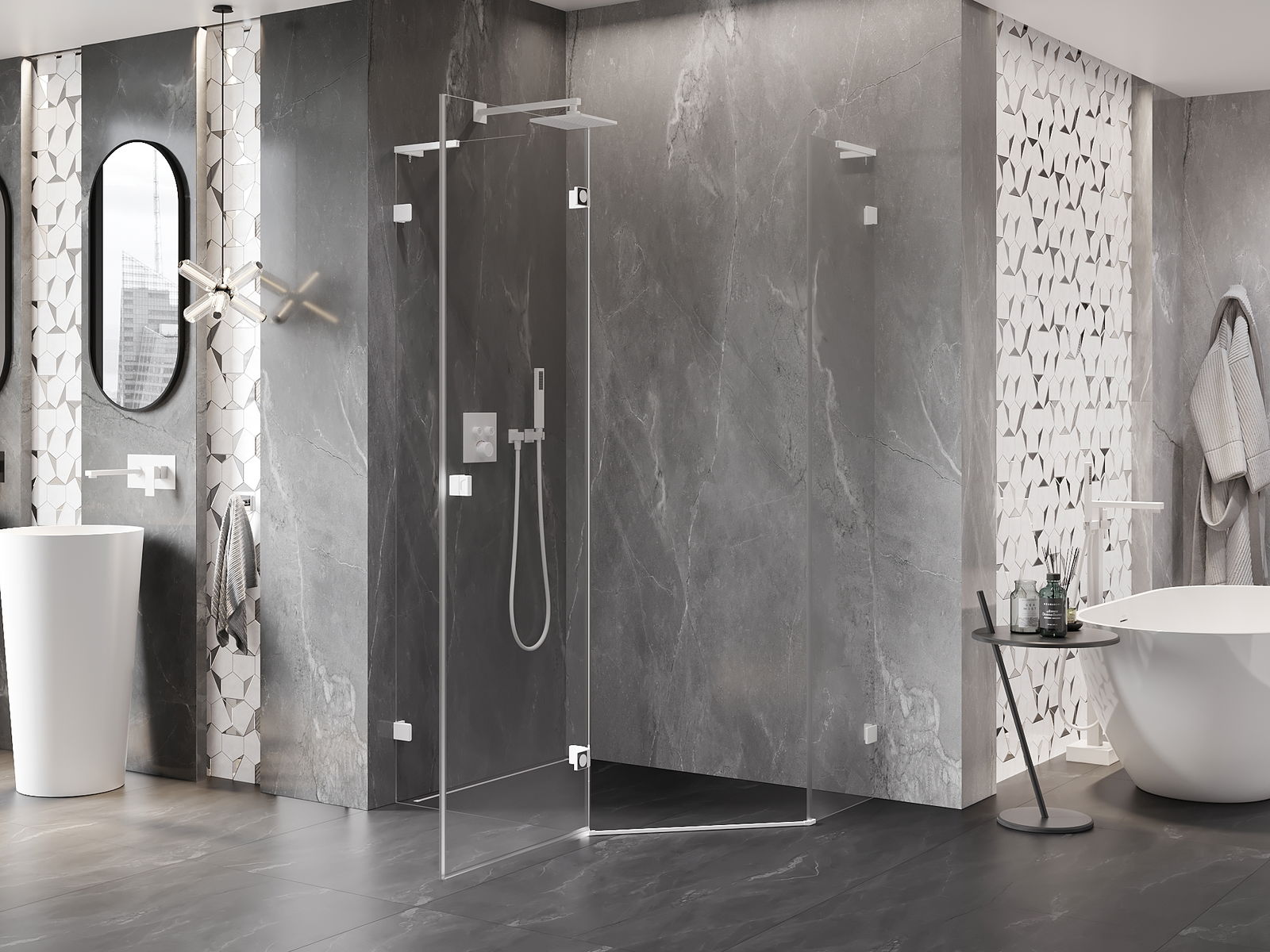 A terméket igény szerint felszerelheti akár a zuhanytálcára, akár közvetlenül a padlóra. Az univerzális szerelési mód lehetővé teszi a termék alkalmazkodását különböző típusú fürdőszobákhoz és térbeli konfigurációkhoz.