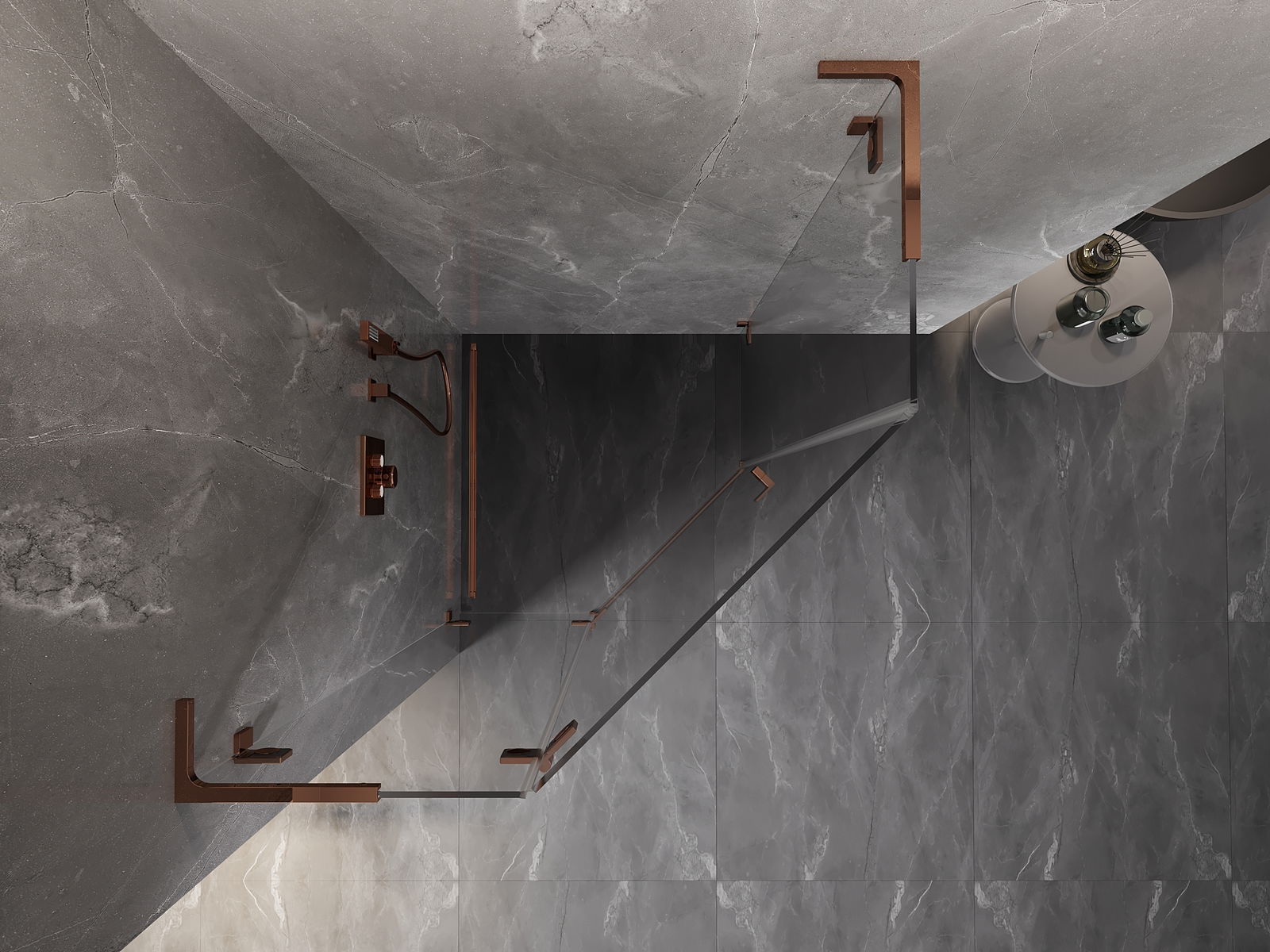 Mexen Lunar L ötszögletű zuhanykabin, balra nyitható 90 x 90 cm, átlátszó, rózsaarany - 831L-090L-090P-60-00-L