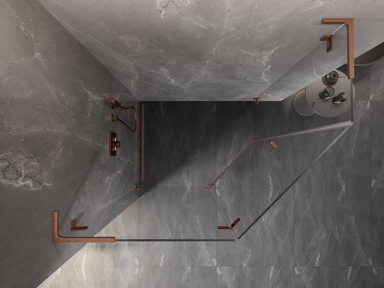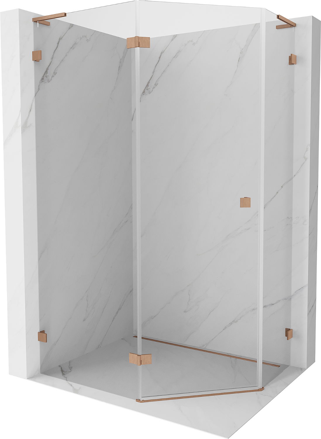 Mexen Lunar L ötszögletű leereszkedő bal 90 x 80 cm, átlátszó, kefe réz - 831L-090L-080P-65-00-L