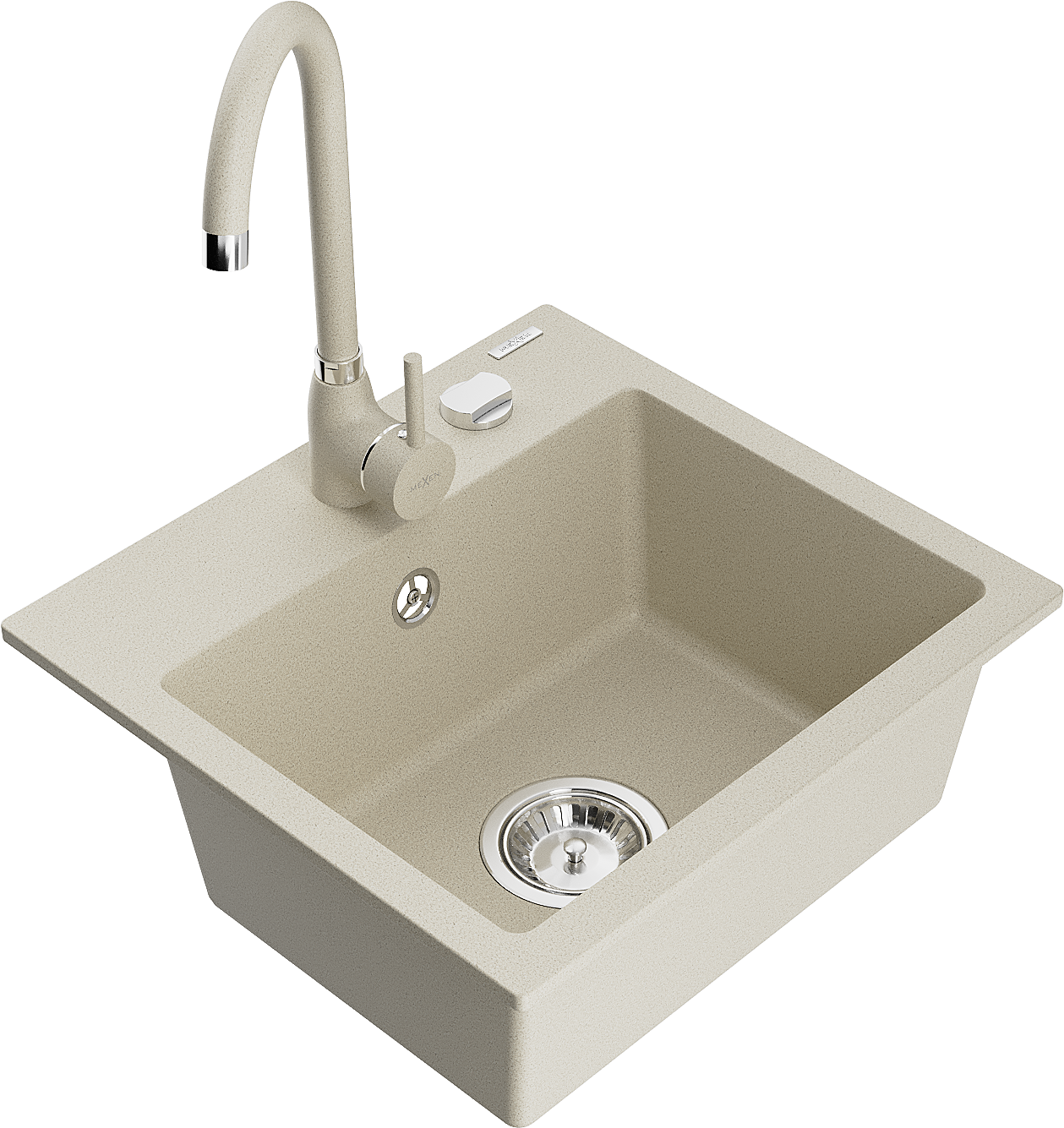 Mexen Milo 1-medencés gránit mosogató Telma konyhai csapteleppel, bézs - 6505-69-670200-69