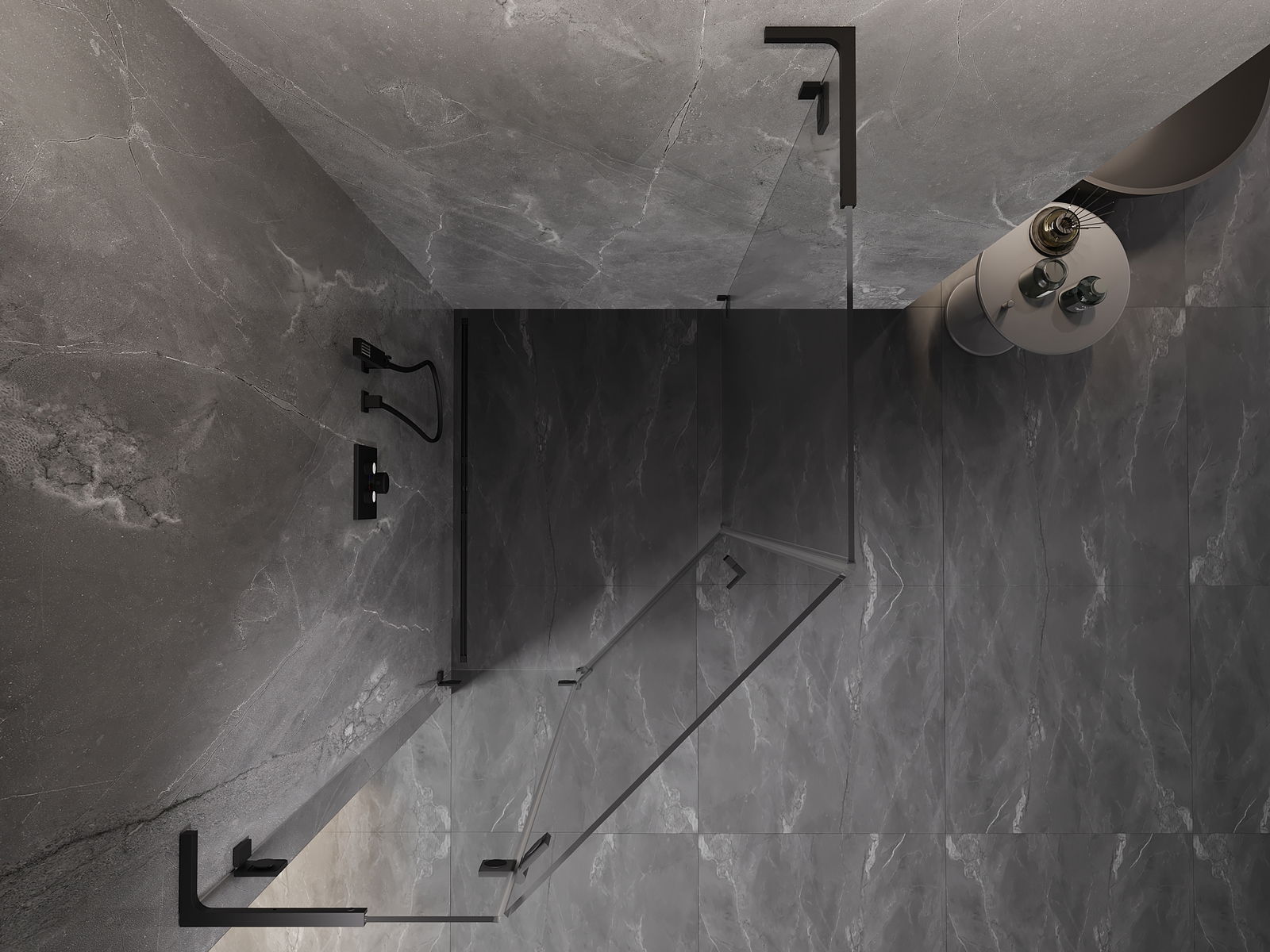 Mexen Lunar L ötszögletű, nyíló zuhanykabin bal oldali 80 x 100 cm, átlátszó, fekete - 831L-080L-100P-70-00-L