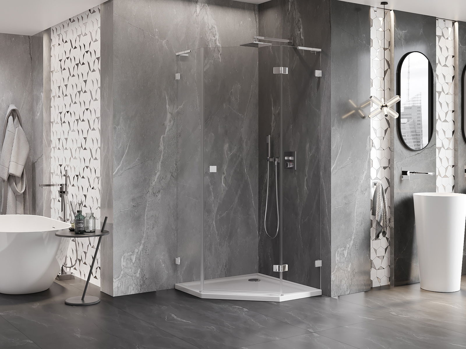 Mexen Lunar L ötszögletű jobb nyílású zuhanykabin 100 x 100 cm, átlátszó, króm - 831L-100P-100L-01-00-P