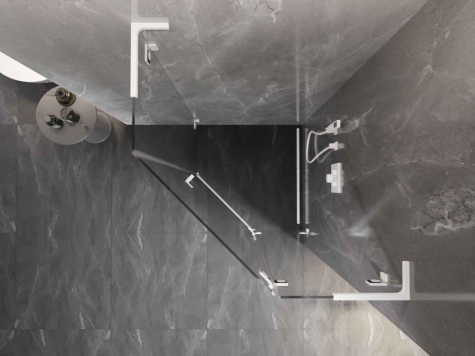 Mexen Lunar L ötoldalú zuhanykabin jobbos nyíló ajtóval 100 x 100 cm, átlátszó, fehér - 831L-100P-100L-20-00-P