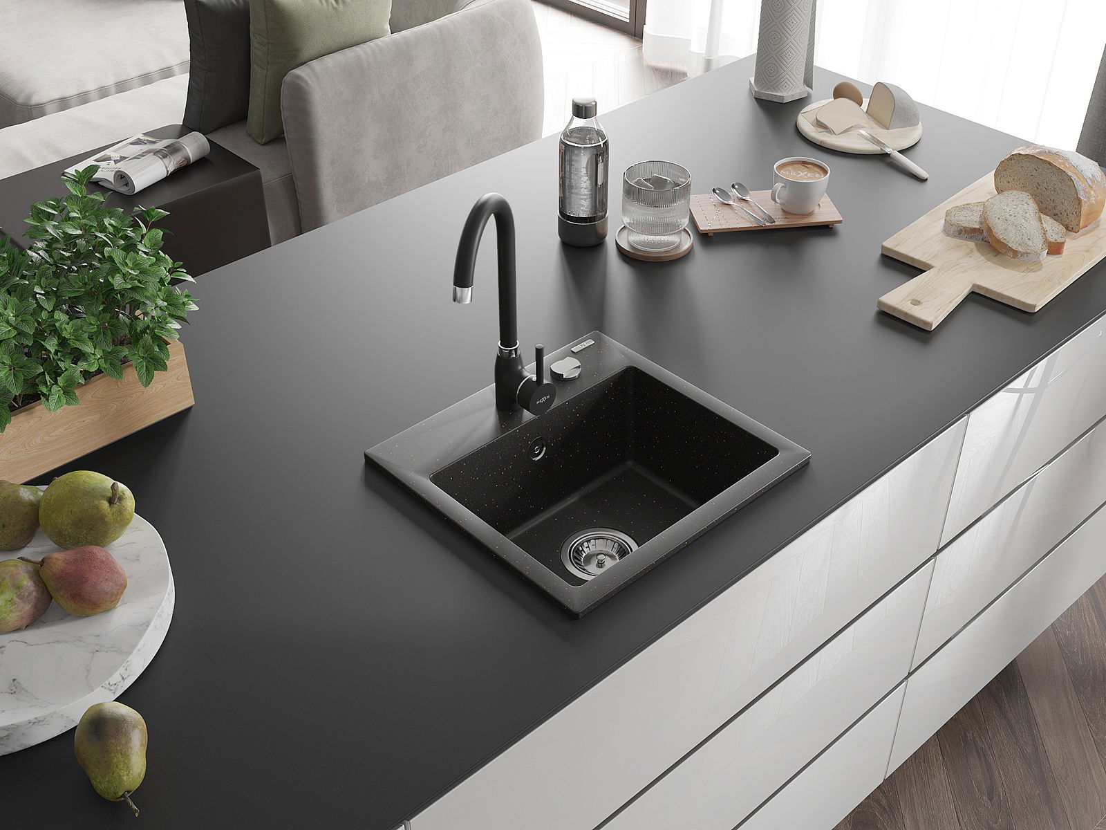 A mosogató magas minőségű gránitból készült. Elegáns, de mindenekelőtt praktikus kiegészítője minden konyhának, függetlenül annak stílusától. A gránit magas minősége és tartóssága hosszú távú használatot biztosít.