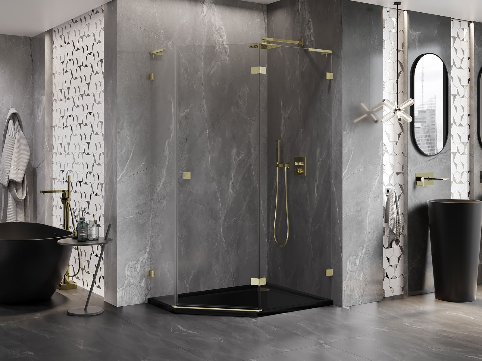 Mexen Lunar L ötszögletű, jobbos nyíló zuhanyfülke 100 x 80 cm, átlátszó, arany szálcsiszolt - 831L-100P-080L-55-00-P