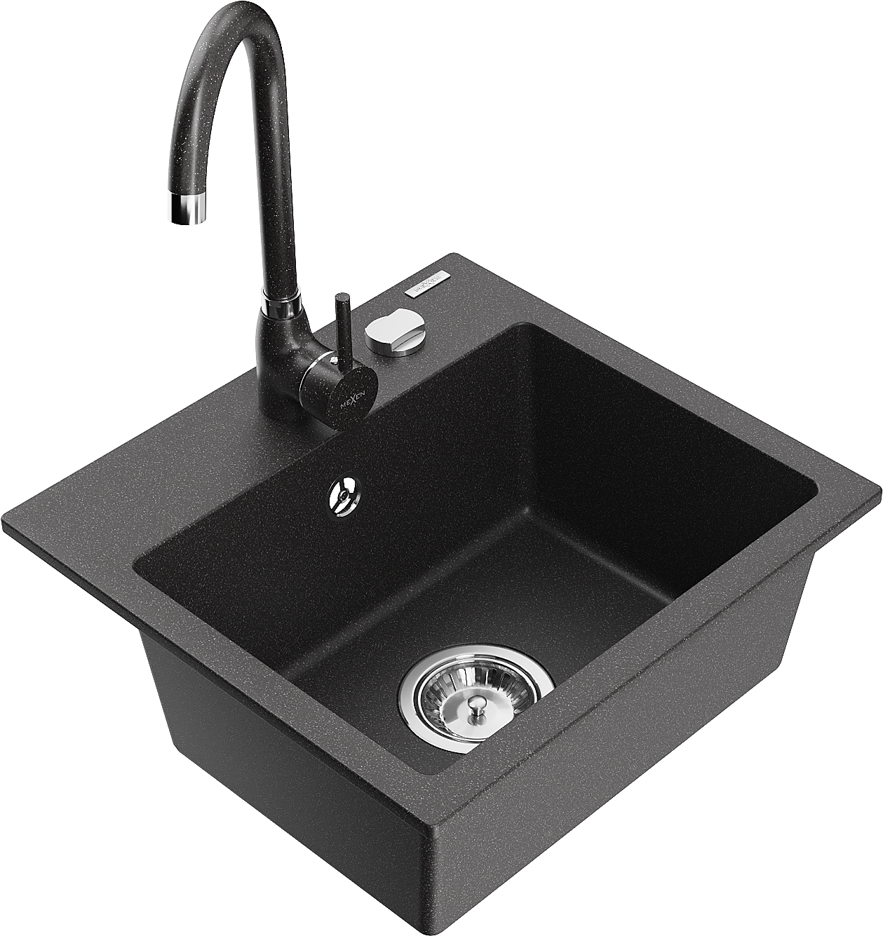 Mexen Milo gránit mosogató 1-medencés konyhai csapteleppel Telma, fekete pöttyös - 6505-76-670200-76