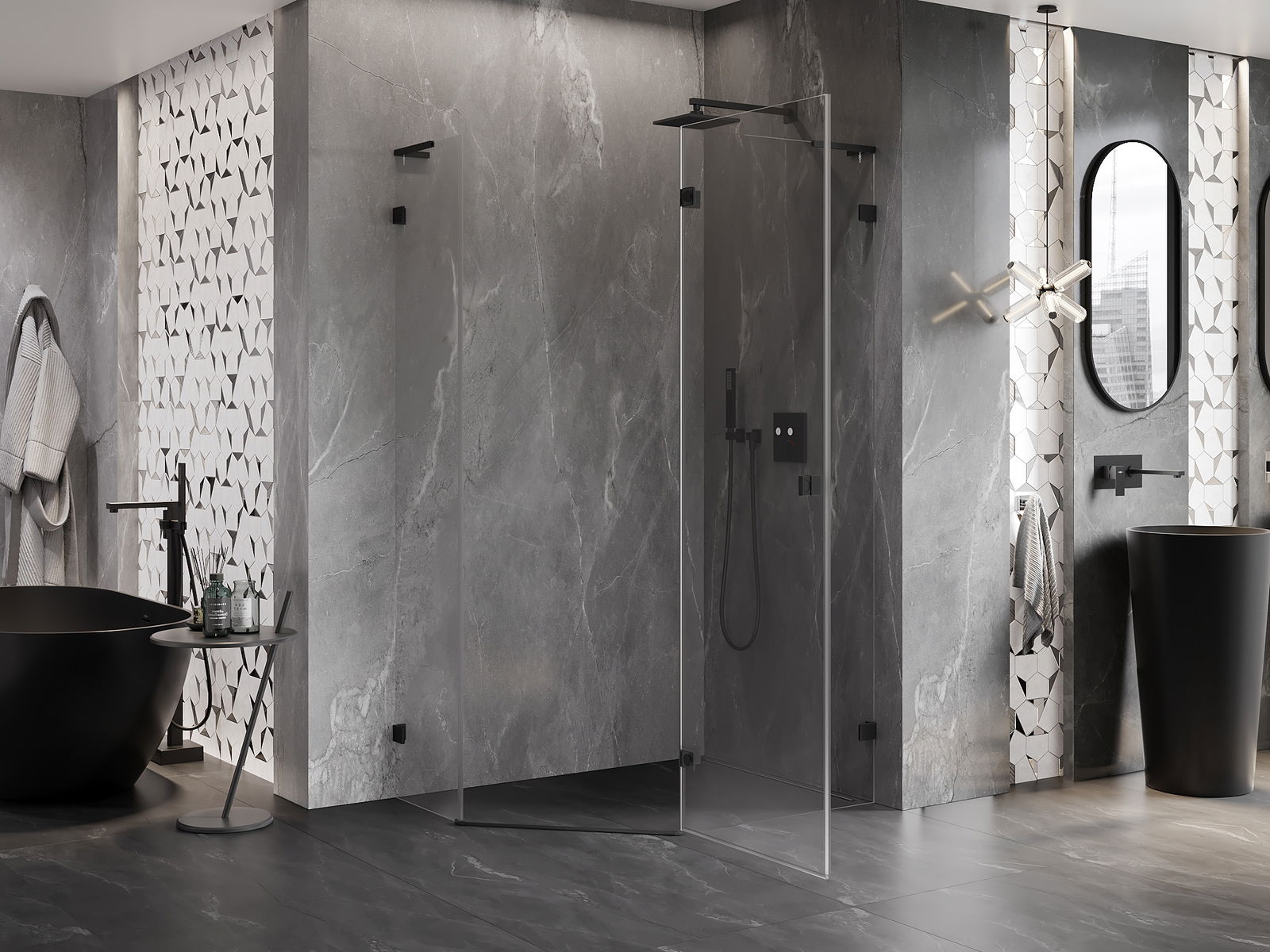 A praktikus és kényelmes fogantyú tartós és ellenálló fémből készült. A divatos forma a profilok színéhez igazított kivitelezéssel együtt modern és stílusos megjelenést kölcsönöz az egésznek, kiemelve minden fürdőszoba esztétikáját.