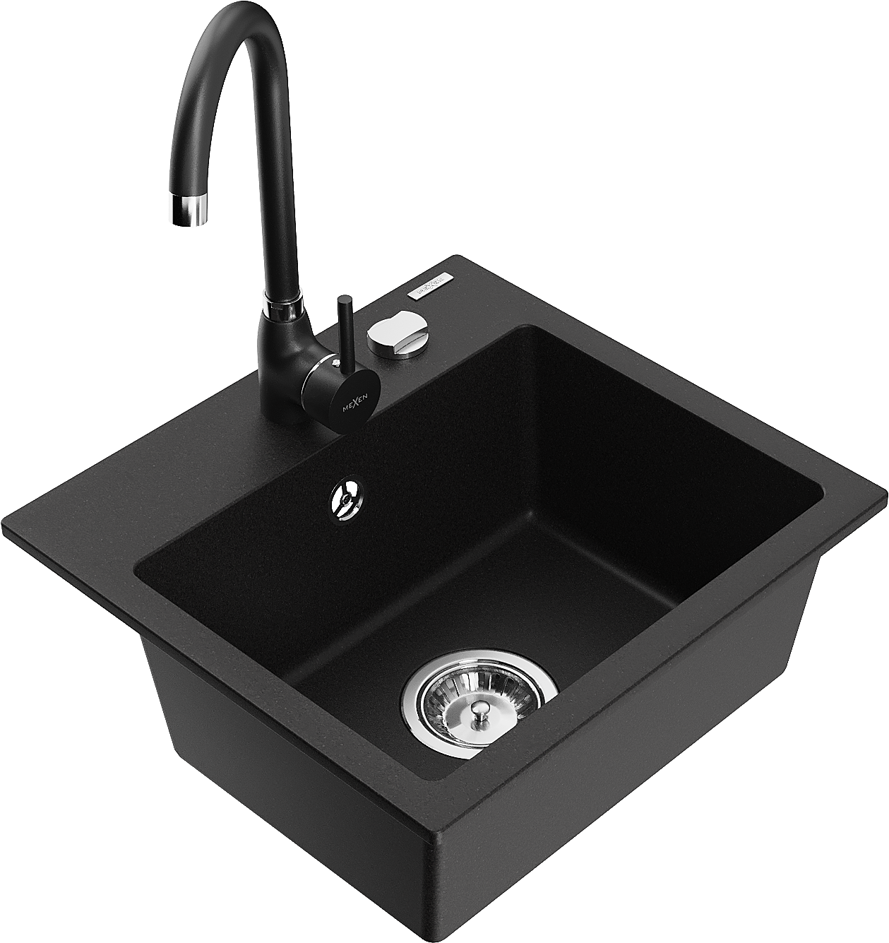 Mexen Milo gránit mosogató 1-medencés Telma konyhai csapteleppel, fekete - 6505-77-670200-70