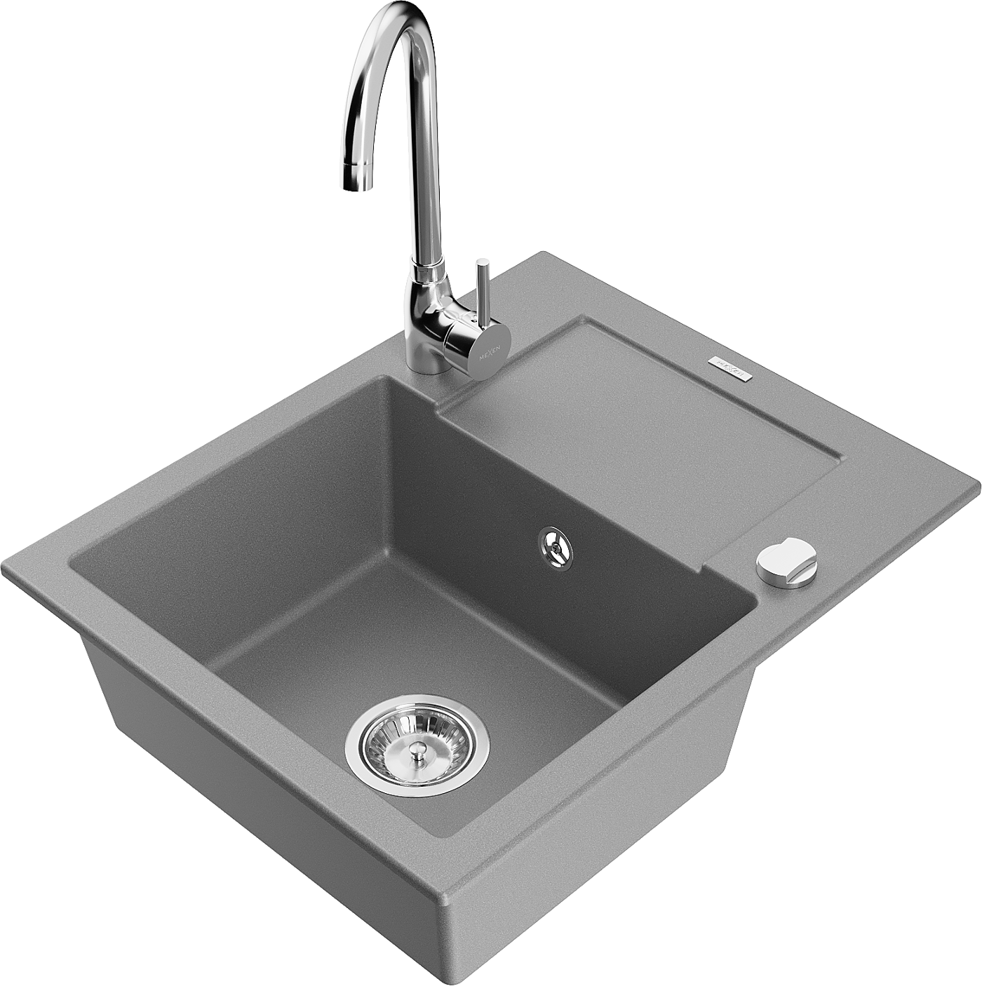 Mexen Enzo 1-medencés gránit mosogató csepegtetővel és Telma konyhai csapteleppel, szürke - 6506-71-670200-00