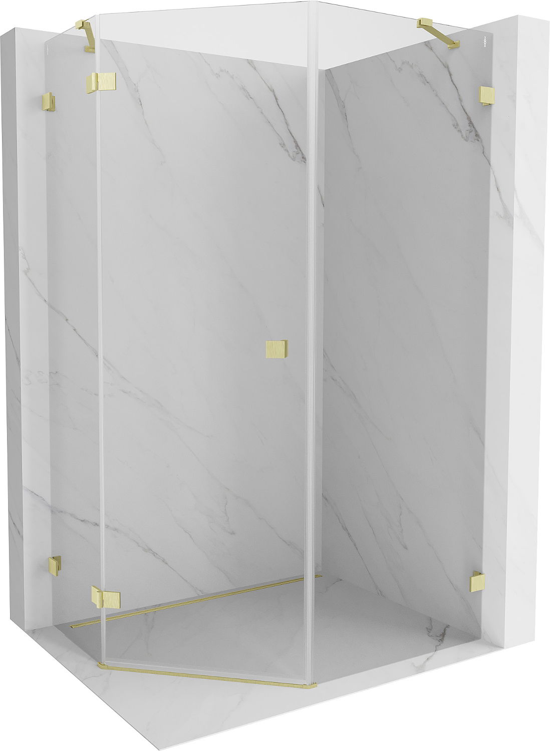 Mexen Lunar ötszögletű balra nyíló zuhanykabin 80 x 100 cm, átlátszó, arany szálcsiszolt - 831-080L-100P-55-00-L