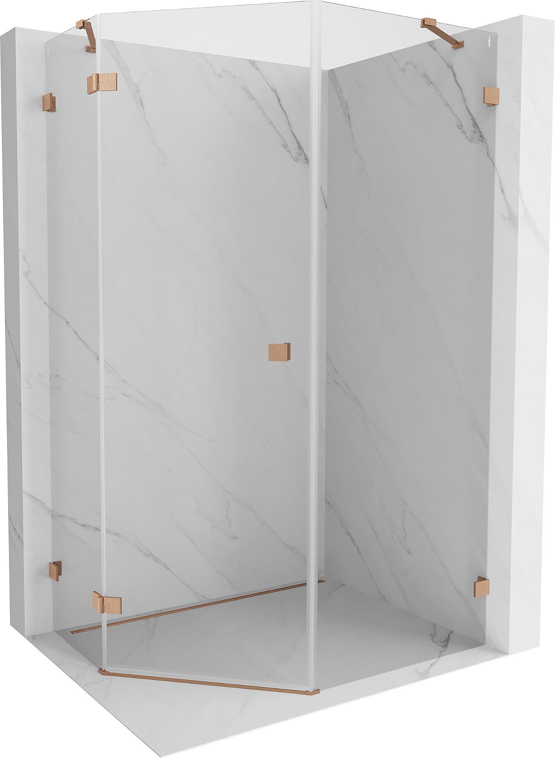 Mexen Lunar ötszögletű nyíló zuhanykabin balos 80 x 100 cm, átlátszó, csiszolt réz - 831-080L-100P-65-00-L