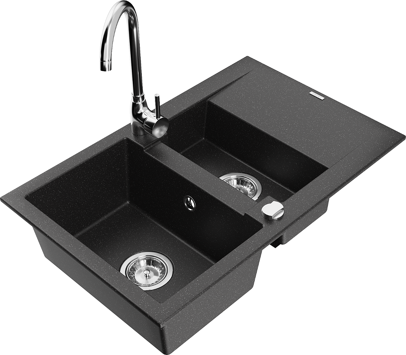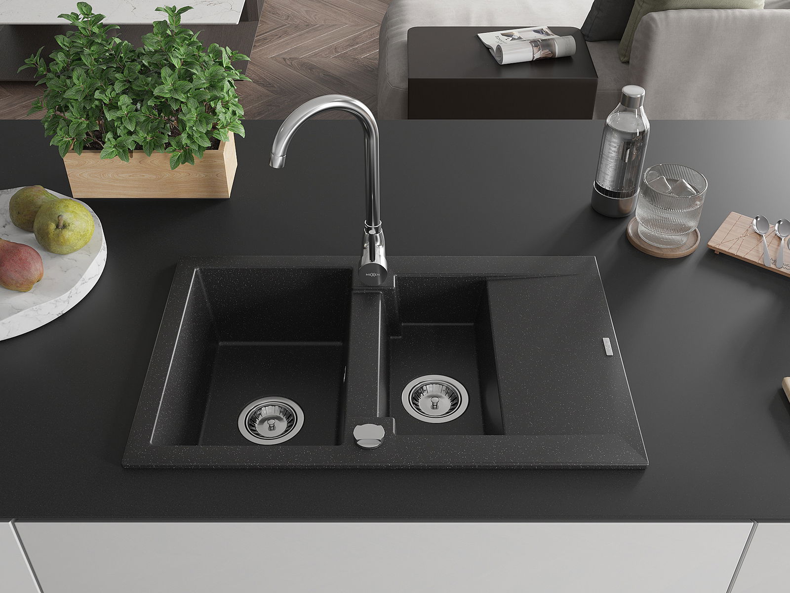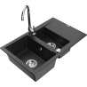 Mexen Gaspar 1,5 medencés gránit mosogató csepegtetővel és Telma konyhai csapteleppel, fekete/ezüst - 6507-73-670200-00