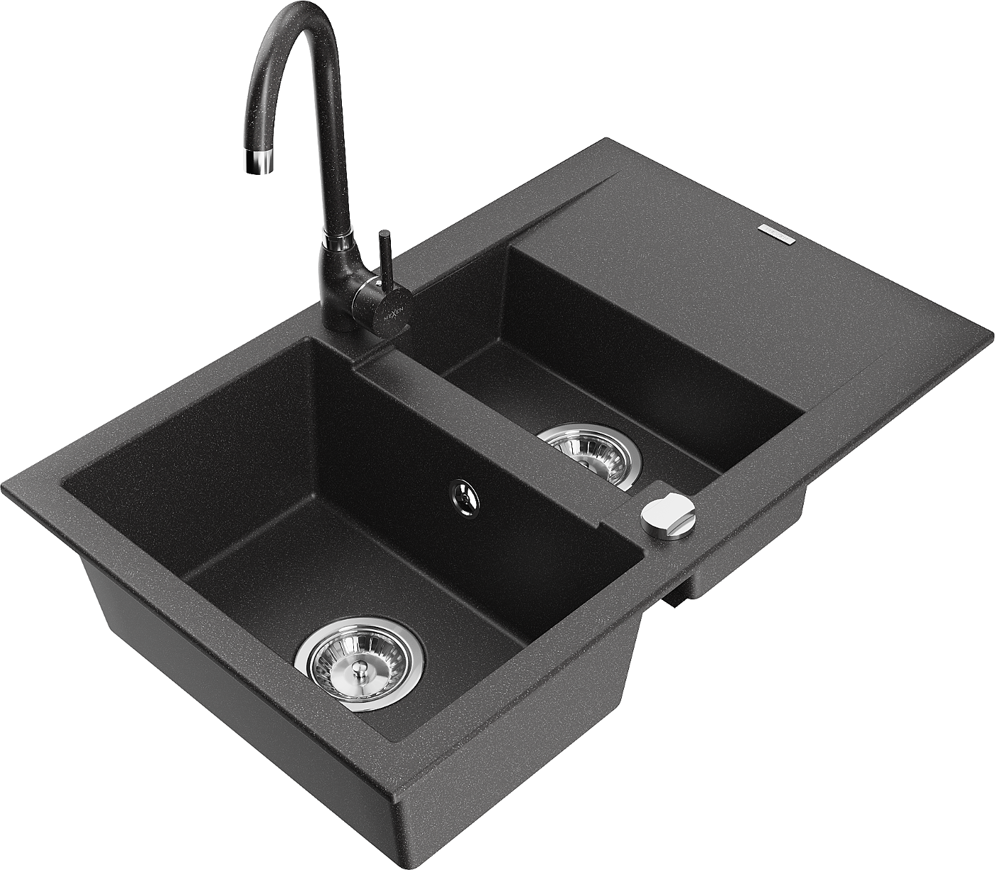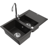 Mexen Gaspar 1,5 rekeszes gránit mosogató, csepegtetővel és Telma konyhai csappal, fekete pöttyös - 6507-76-670200-76