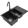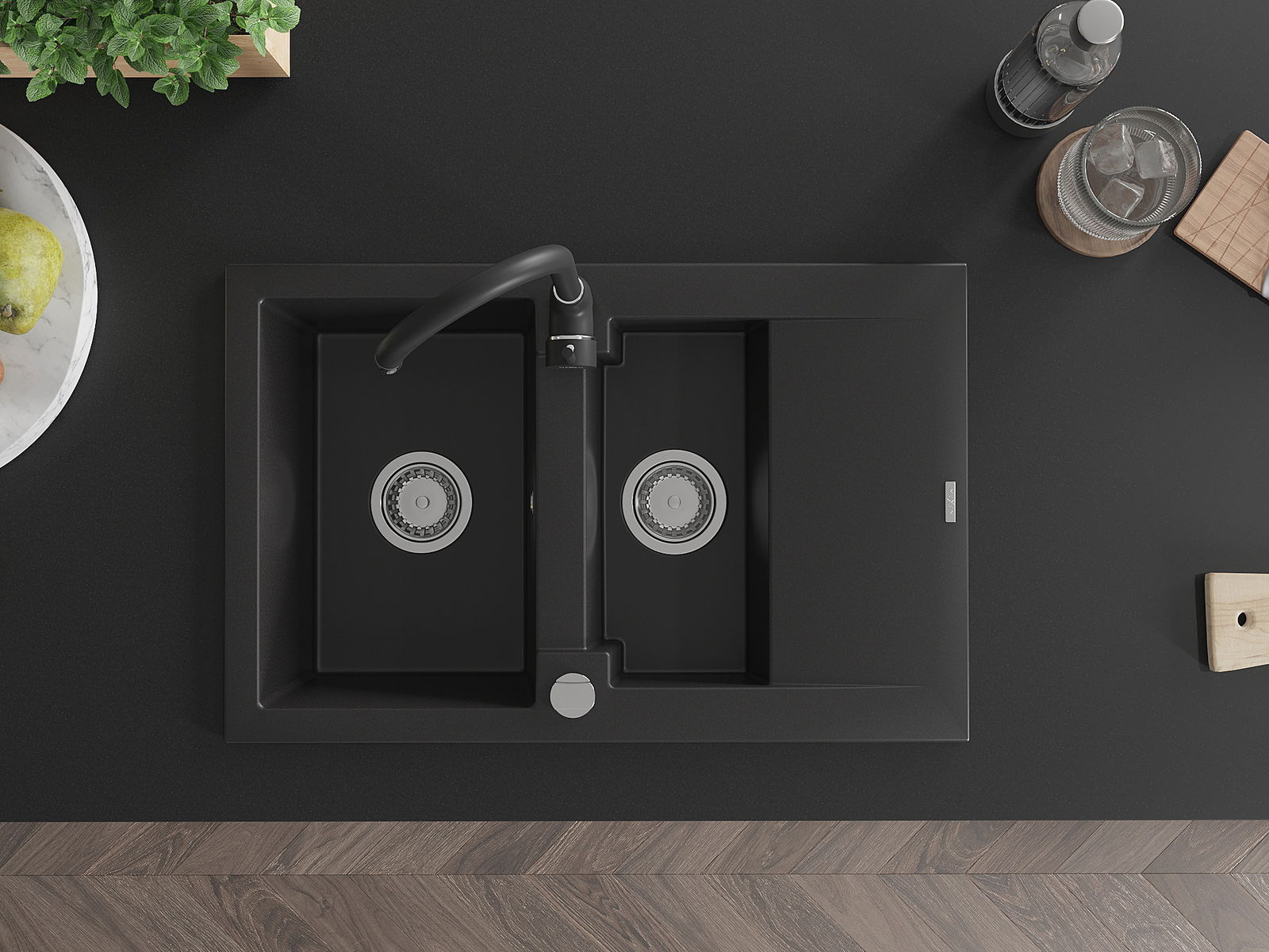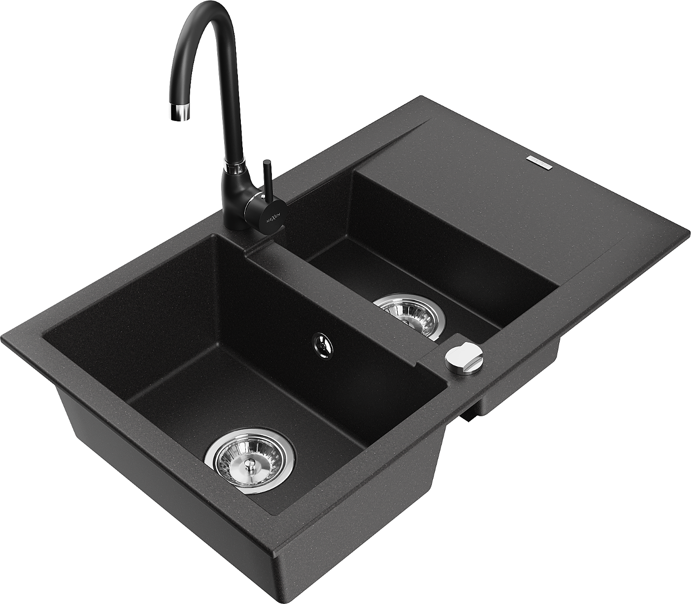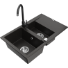 Mexen Gaspar 1,5 rekeszes mosogatótálca csepegtetővel és Telma konyhai csapteleppel, fekete - 6507-77-670200-70