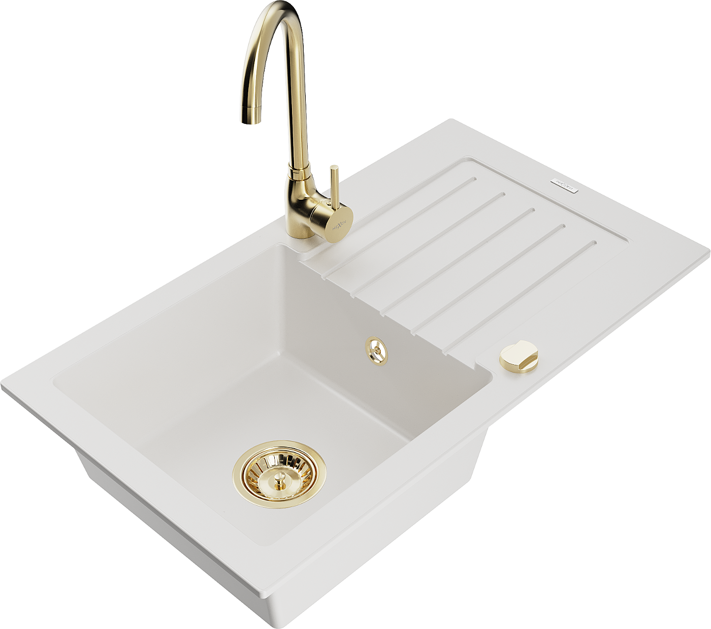 Mexen Pablo 1-kamrás gránit mosogató csepegtetővel és Telma konyhai csapteleppel, fehér - 6510-20-670200-50