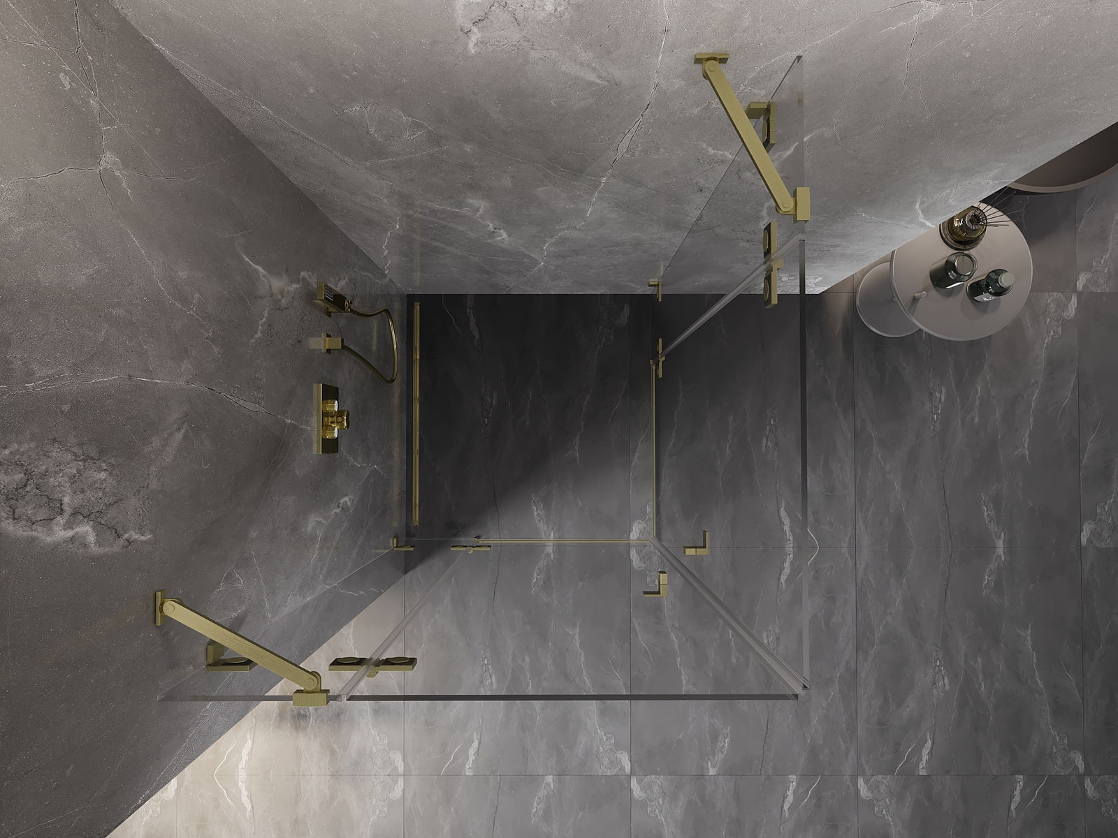 Mexen Lunar Duo nyíló zuhanykabin 70 x 70 cm, átlátszó, arany kefélve - 834-070L-070P-55-00