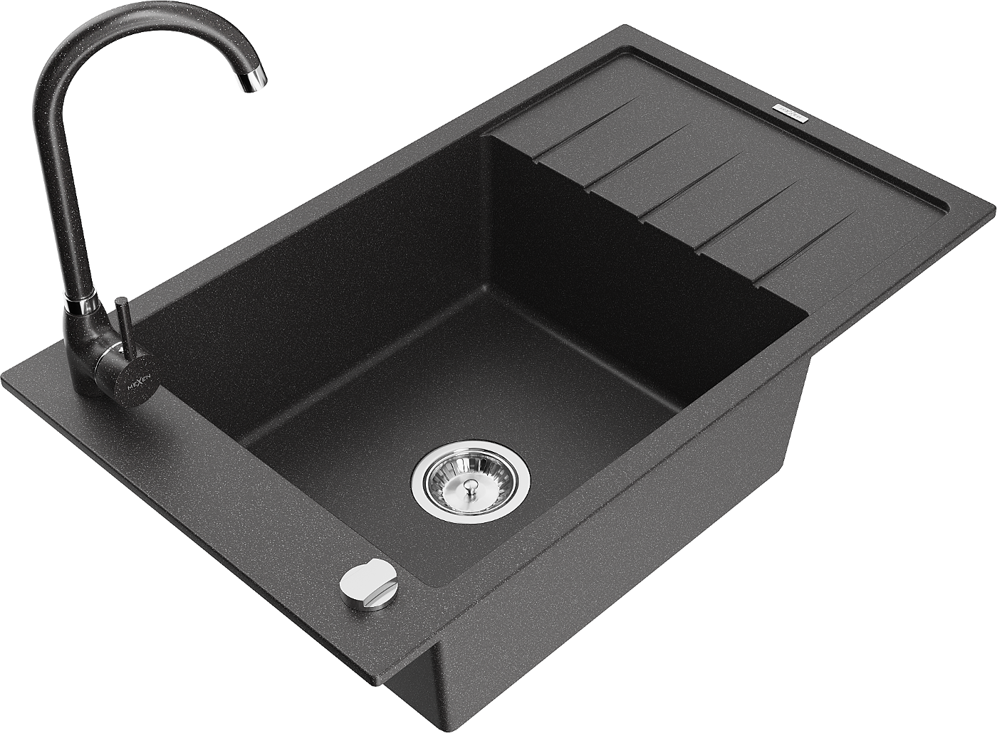 Mexen Elias gránit mosogató 1-medencés csepegtetővel és konyhai csapteleppel Telma, fekete pöttyös - 6511-76-670200-76