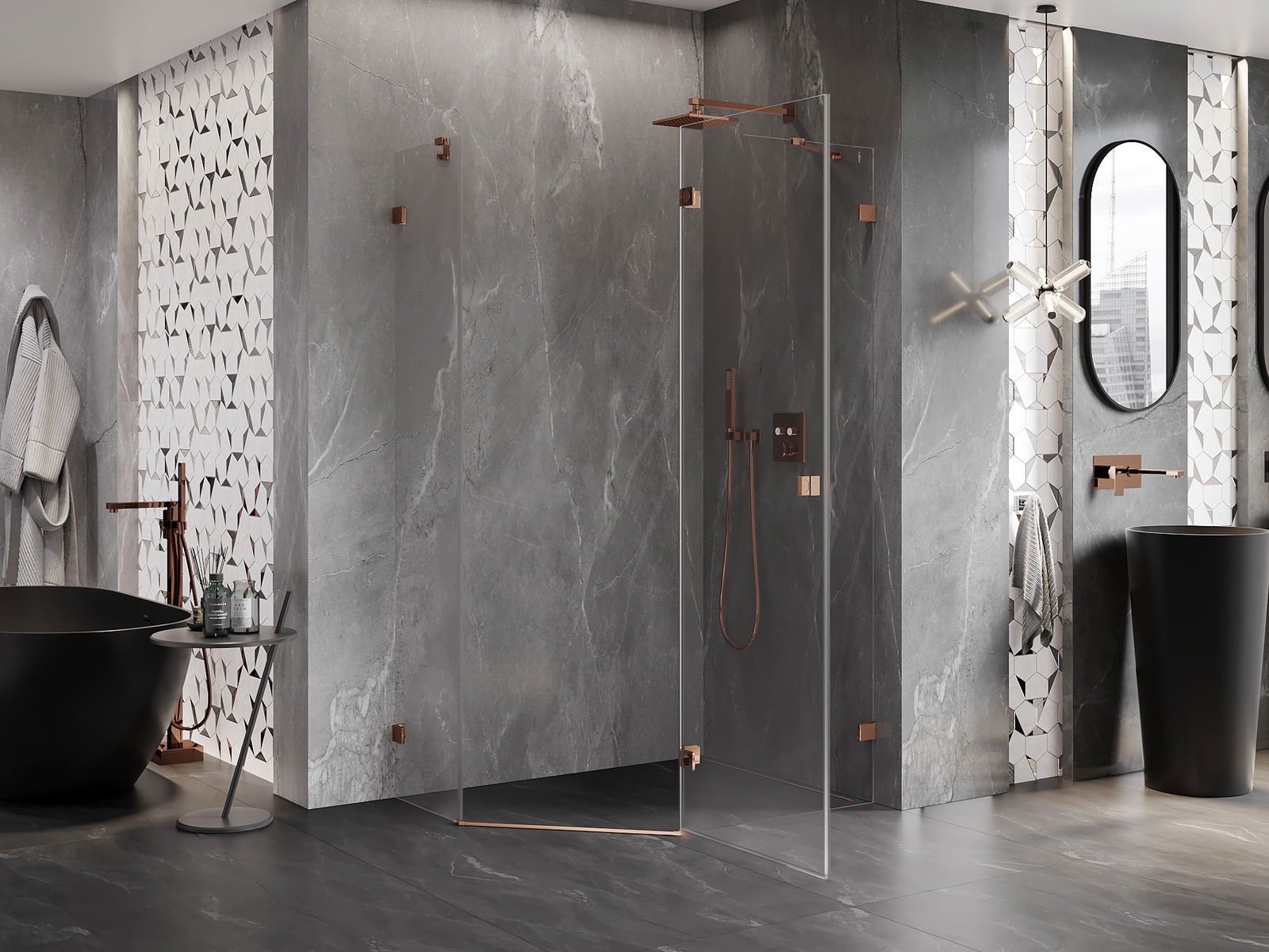 Mexen Lunar ötszögletű jobbos zuhanykabin 100 x 90 cm, átlátszó, rózsaarany - 831-100P-090L-60-00-P