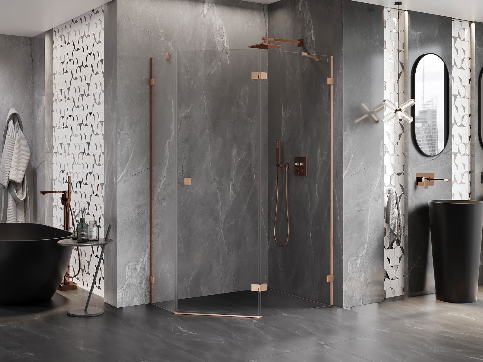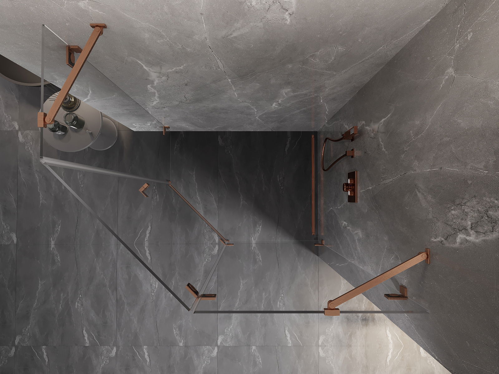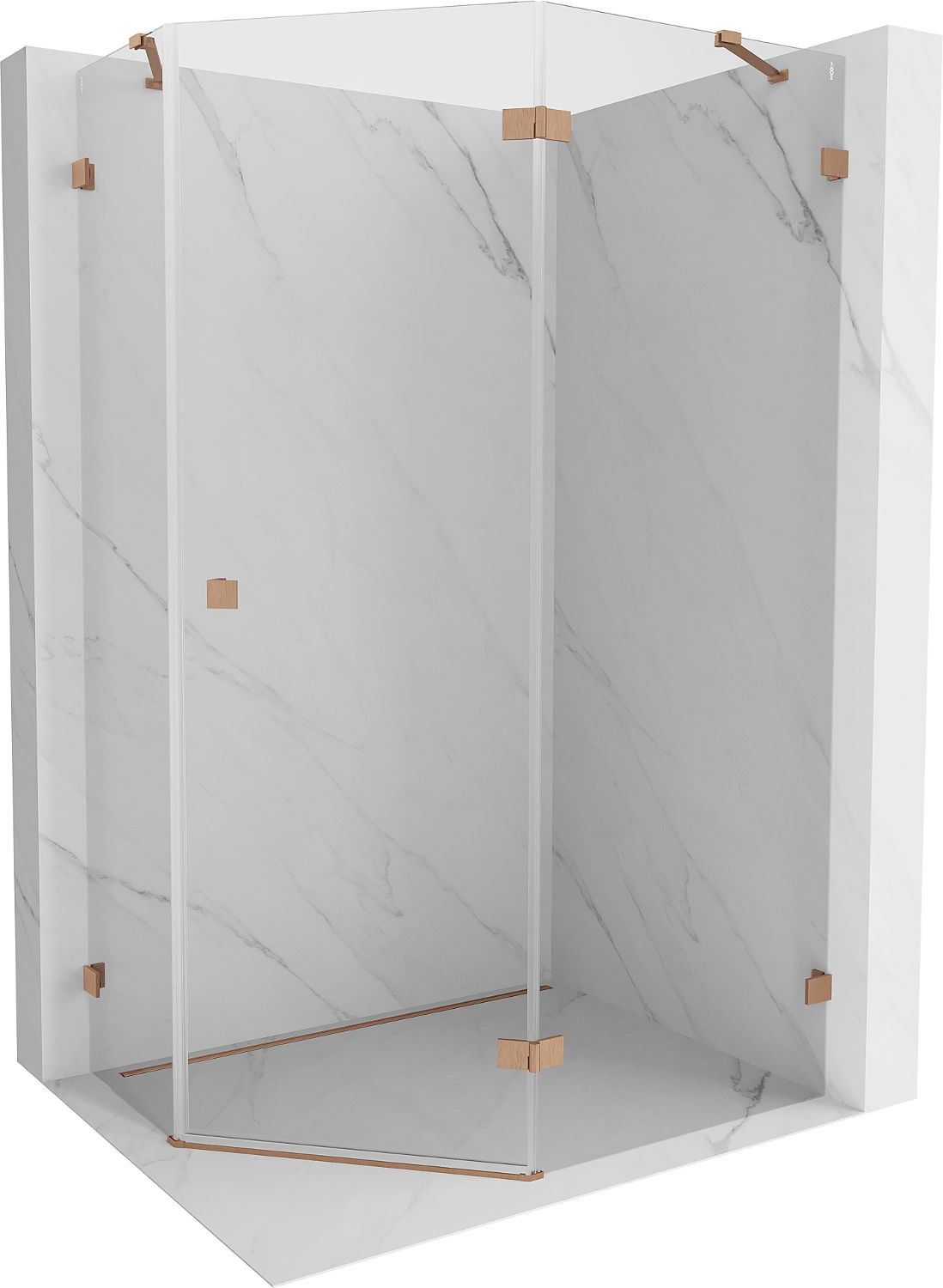 Mexen Lunar ötszögletű, jobbra nyíló, 90 x 80 cm-es zuhanykabin, átlátszó, sörtézett réz - 831-090P-080L-65-00-P