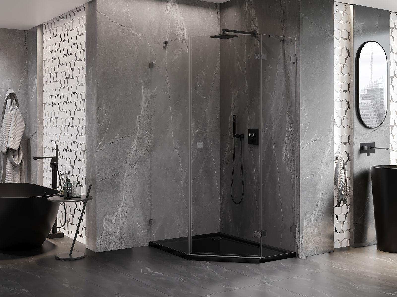 Mexen Lunar ötszögletű jobbra nyíló zuhanykabin 80 x 90 cm, átlátszó, gun gray szálcsiszolt - 831-080P-090L-66-00-P