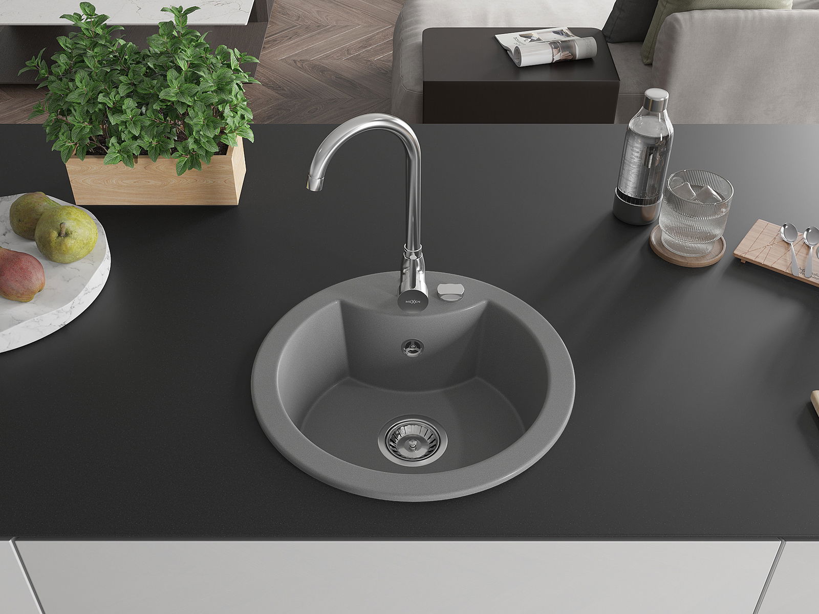 A mosogató kiváló minőségű gránitból készül. Ez egy elegáns és mindenekelőtt minden konyhához praktikus kiegészítés, stílusától függetlenül. A kiváló minőségű és a gránit tartósság biztosítja a sok éves használatát.