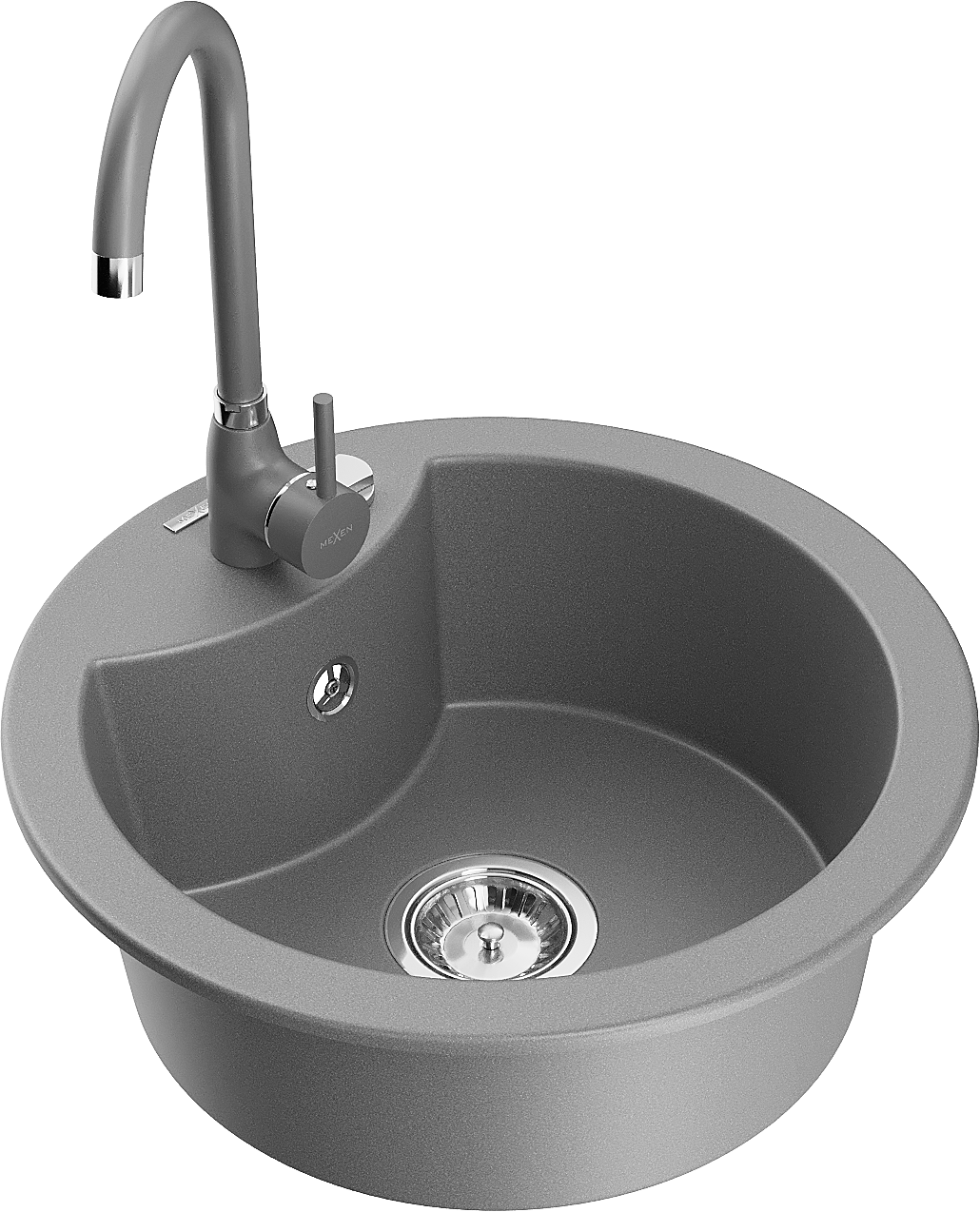 Mexen Diego 1-medencés gránit mosogató Telma konyhai csapteleppel, szürke - 6512-71-670200-71