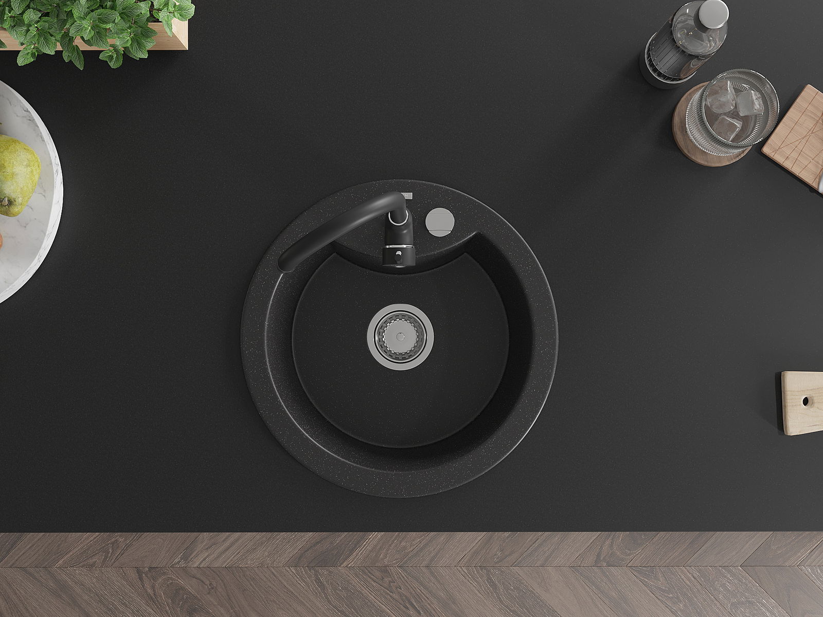 A mosogató kiváló minőségű gránitból készül. Ez egy elegáns és mindenekelőtt minden konyhához praktikus kiegészítés, stílusától függetlenül. A kiváló minőségű és a gránit tartósság biztosítja a sok éves használatát.