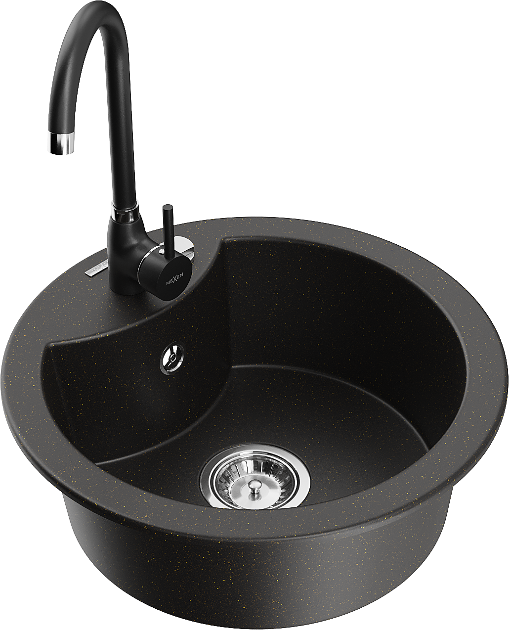 Mexen Diego 1 kamrás gránit mosogató Telma konyhai csapteleppel, fekete/arany - 6512-75-670200-70