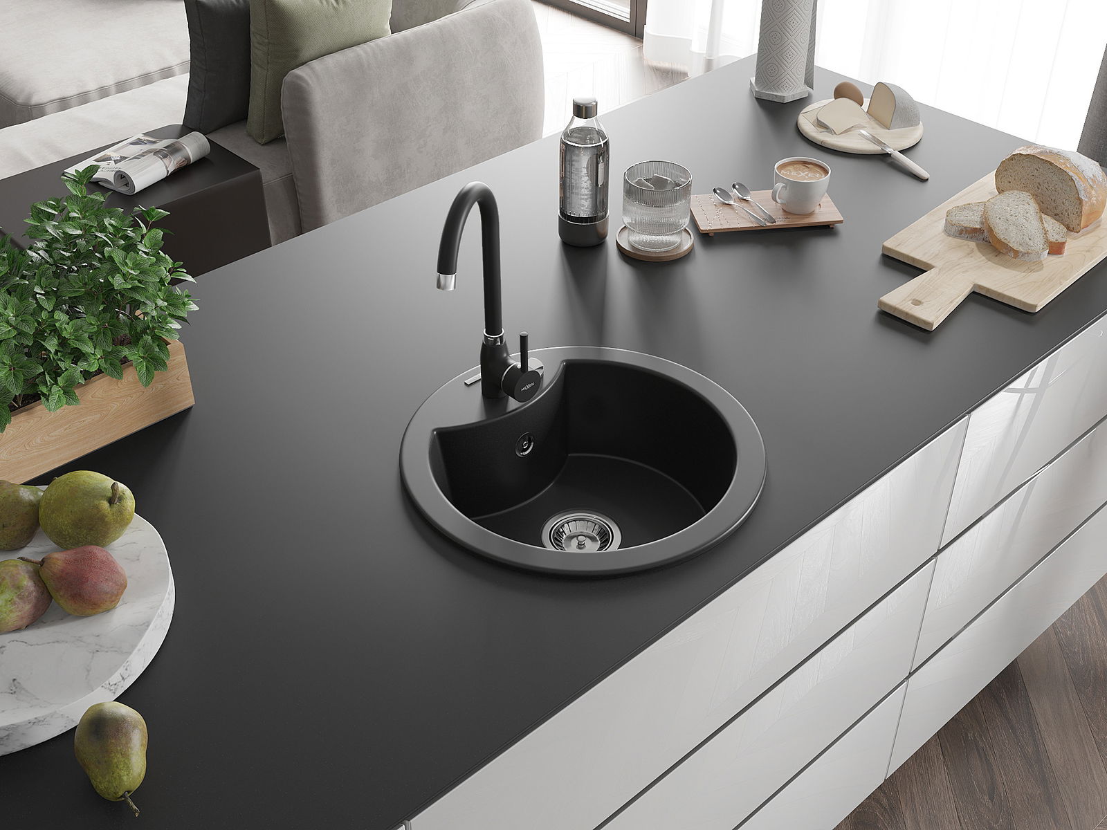 A mosogató magas minőségű gránitból készült. Elegáns, de mindenekelőtt praktikus kiegészítője minden konyhának, függetlenül annak stílusától. A gránit magas minősége és tartóssága hosszú távú használatot biztosít.