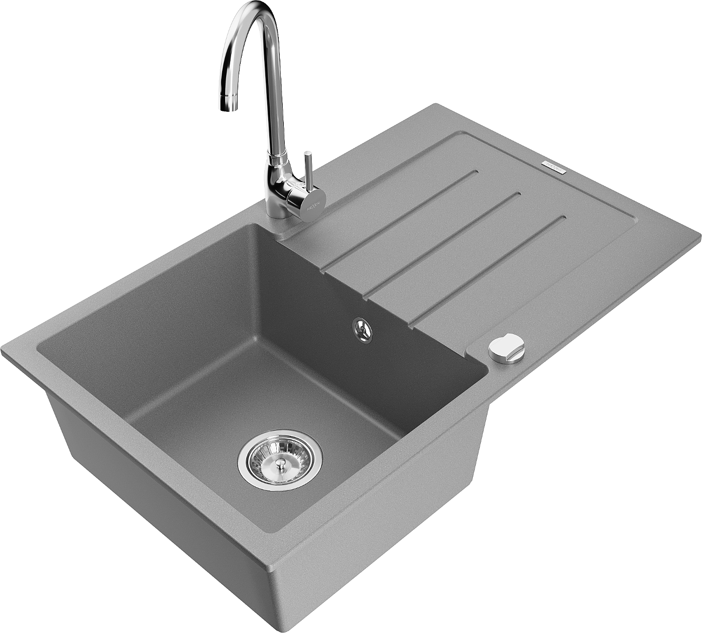 Mexen Bruno egymedencés gránit mosogató csepegtetővel és Telma konyhai csapteleppel, szürke - 6513-71-670200-00