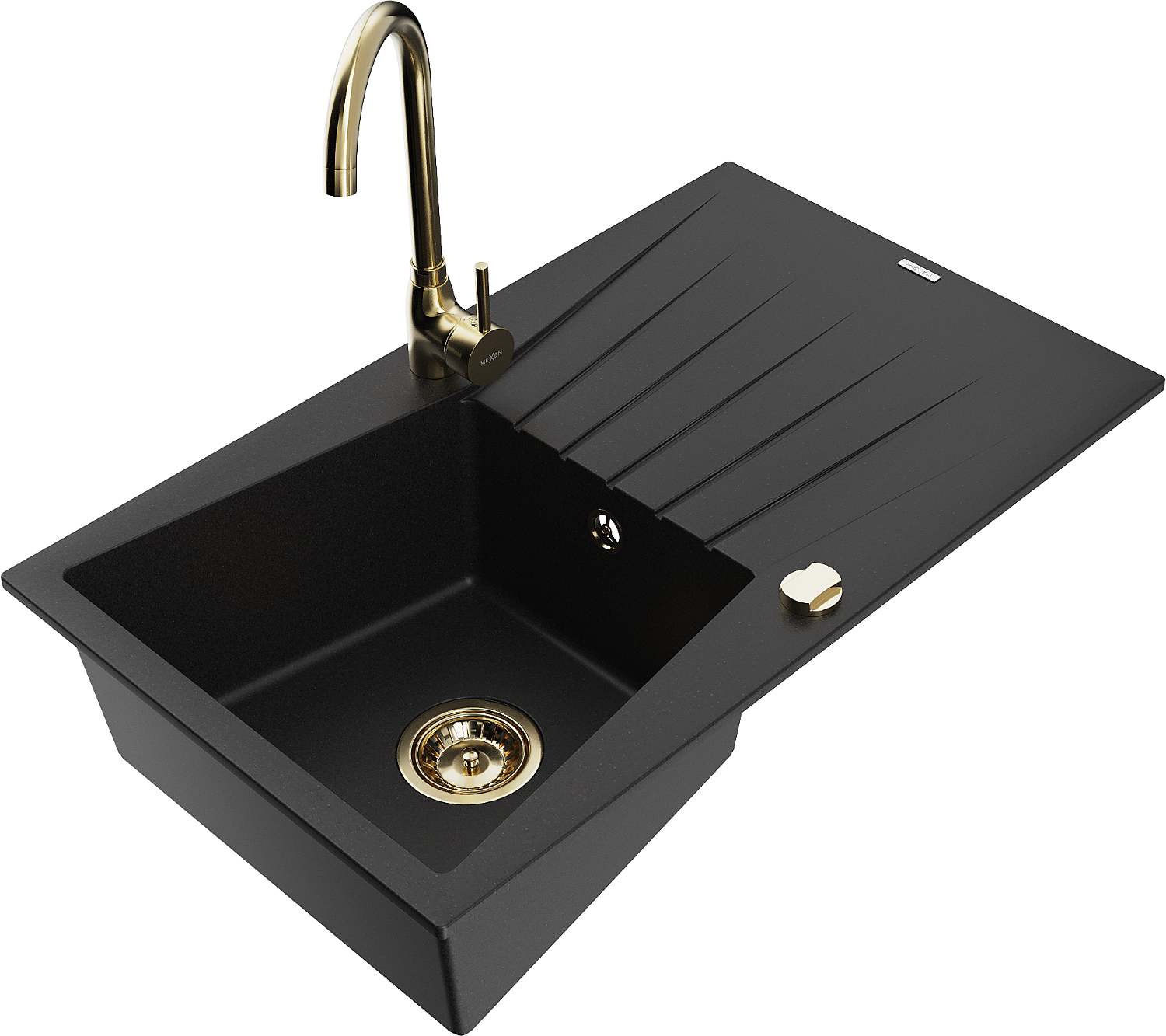 Mexen Cesar egymedencés gránit mosogató csepegtetővel és Telma konyhai csappal, fekete - 6514-77-670200-50