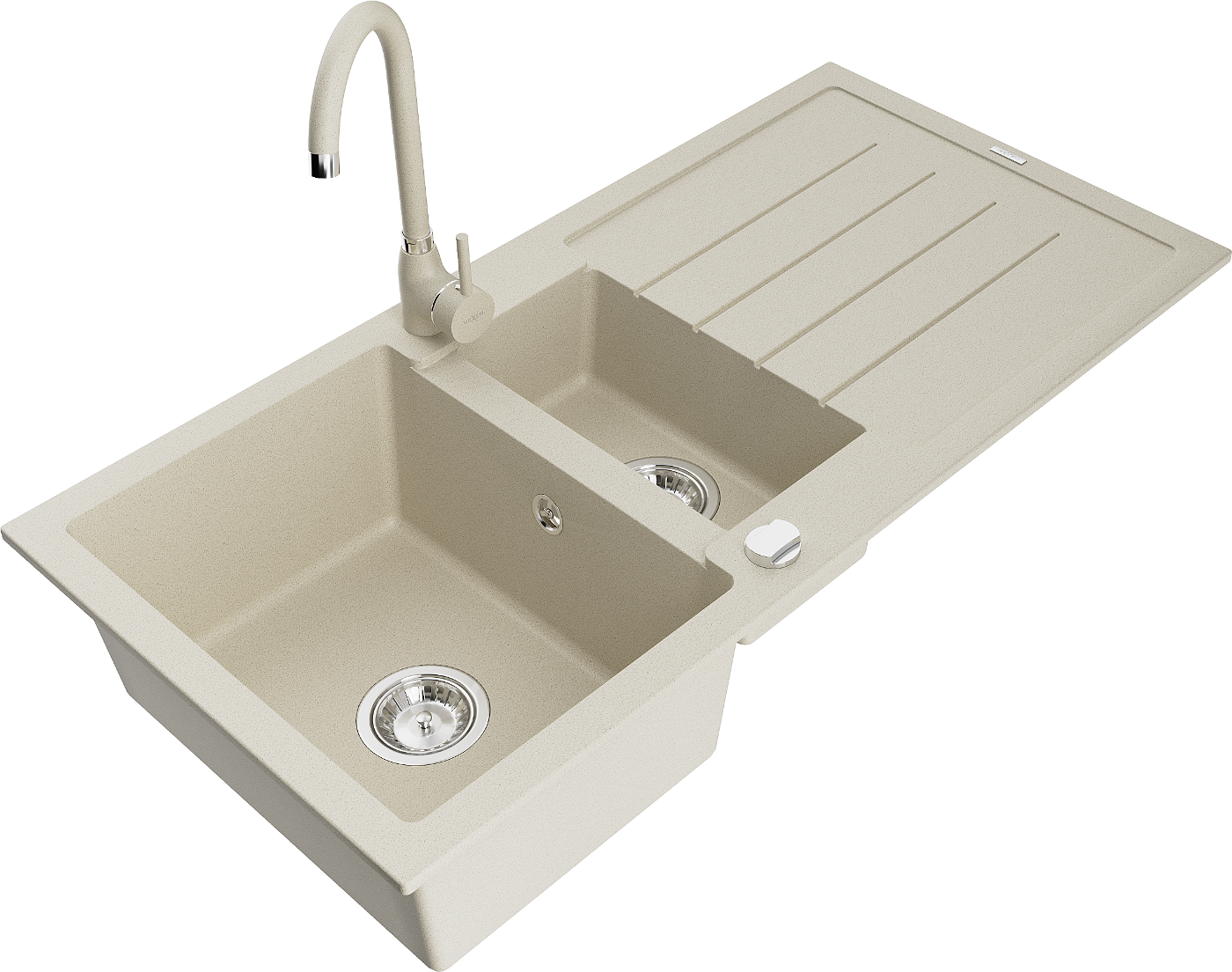 Mexen Andres gránit mosogató 1,5 medencés csepegtetővel és Telma konyhai csappal, bézs - 6515-69-670200-69