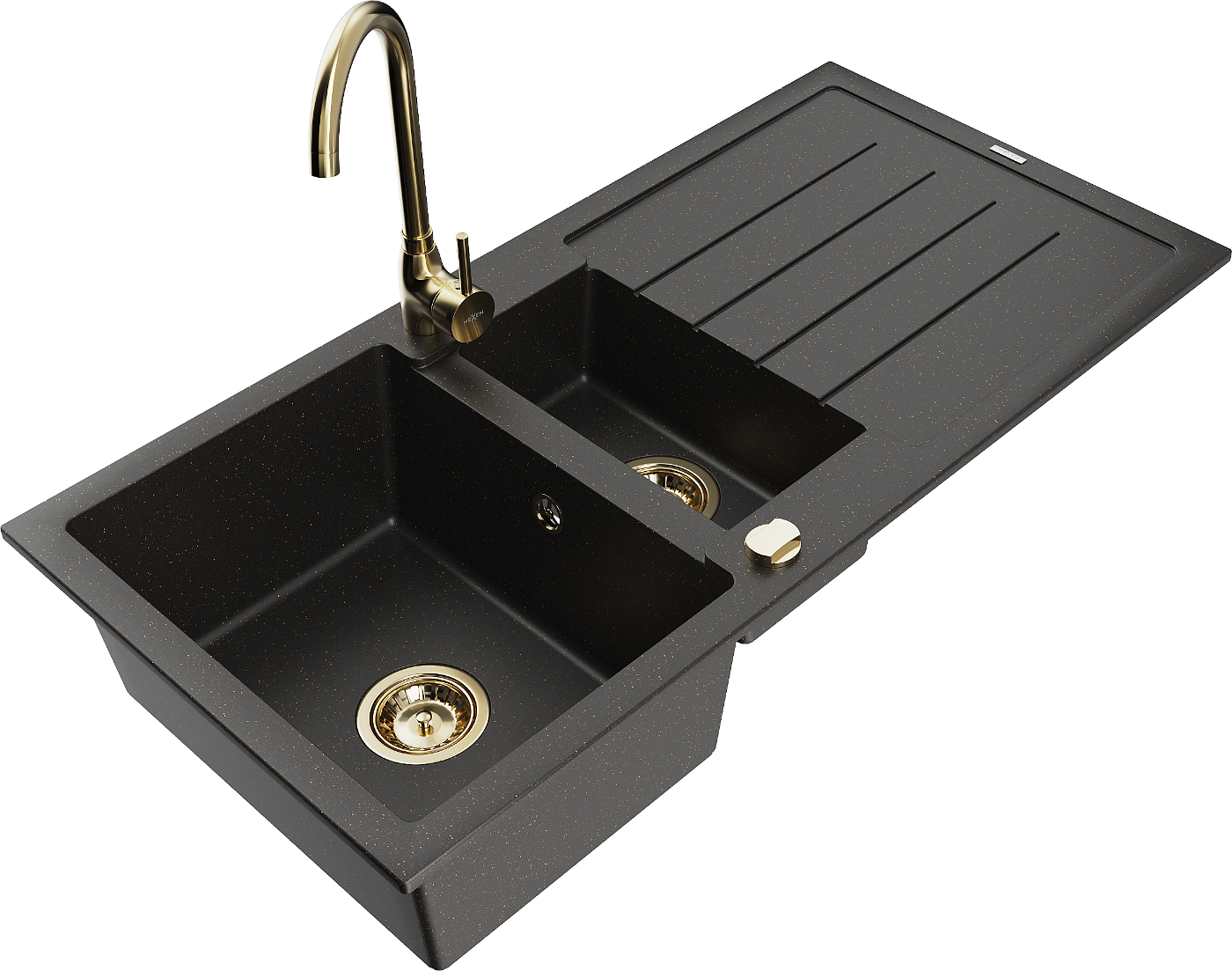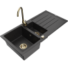 Mexen Andres gránit mosogató 1,5 rekeszes csöpögtetővel és Telma konyhai csappal, fekete/arany - 6515-75-670200-50