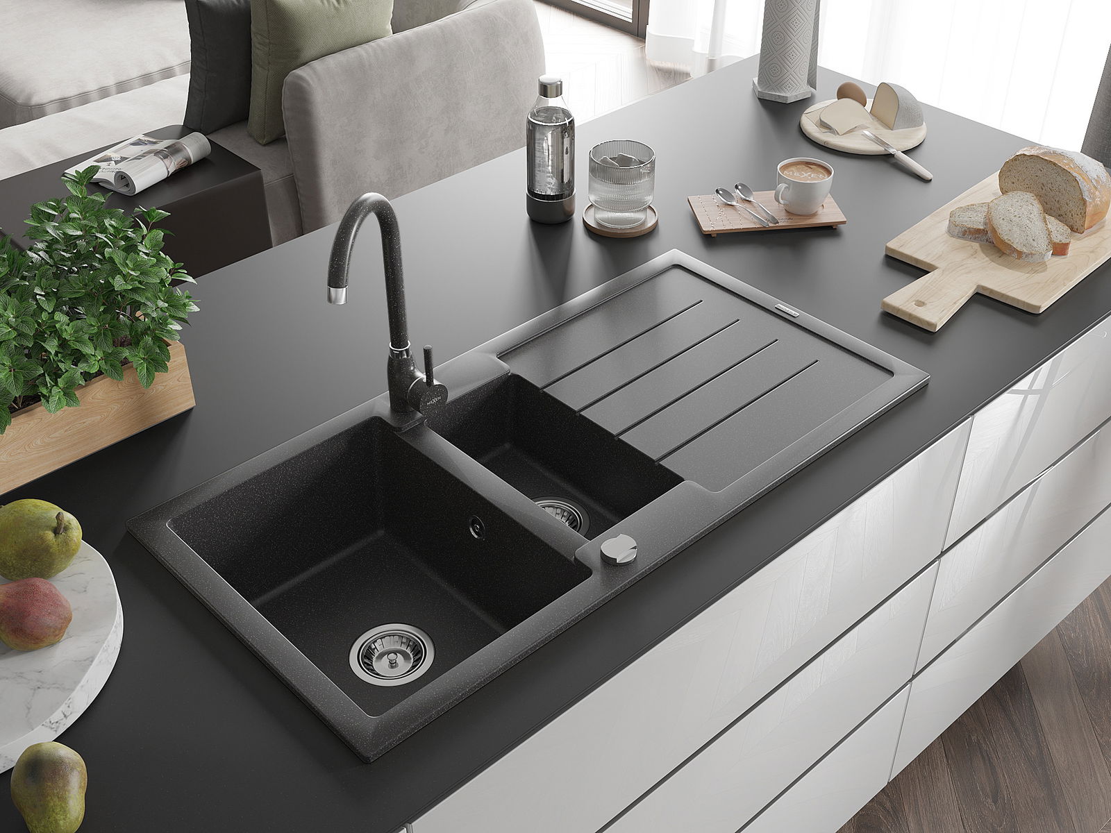 A mosogató magas minőségű gránitból készült. Elegáns, de mindenekelőtt praktikus kiegészítője minden konyhának, függetlenül annak stílusától. A gránit magas minősége és tartóssága hosszú távú használatot biztosít.