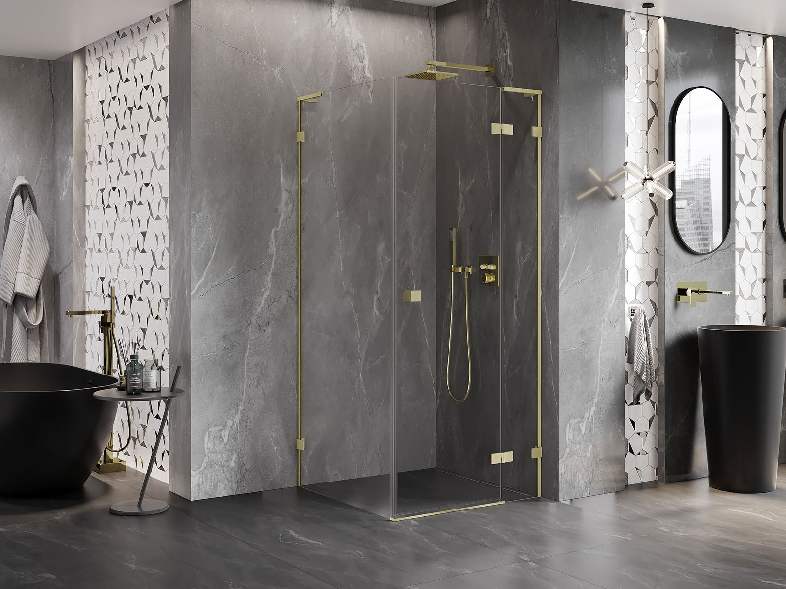 Mexen Lunar L jobbos, nyitható zuhanykabin 90 x 90 cm, átlátszó, arany kefélt - 834L-090-090-55-00-P